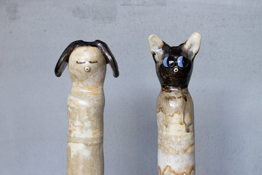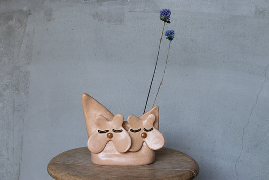 椎猫白魚 / 生きものたちのフラワーベース 特大 犬?猫??