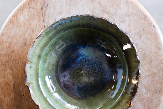 村澤享 / 稜花5寸皿 青銅釉 小鉢 小皿