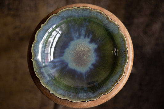 村澤享 / 稜花大皿 8寸 緑キラキラ うつわ 陶芸 通販