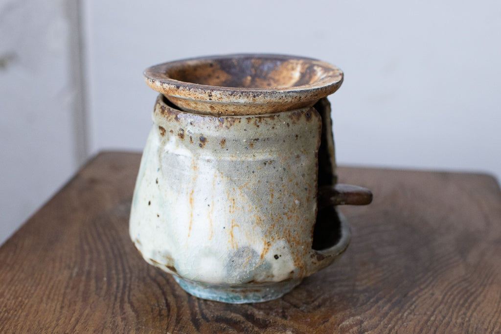 A special dish. I requested Tonoike to make a tea incense burner for which I had a hard time finding a good one. It seems to be quite profound, and through trial and error, they completed it wonderfully. A 3-piece set that includes a body, a small plate for tea (unglazed yakijime), and a candle holder. You rarely see tea incense burners made by artists, but Tonoike's unique rich texture is truly unique. If you're looking for one, please check it out. The video also shows you how to use it.