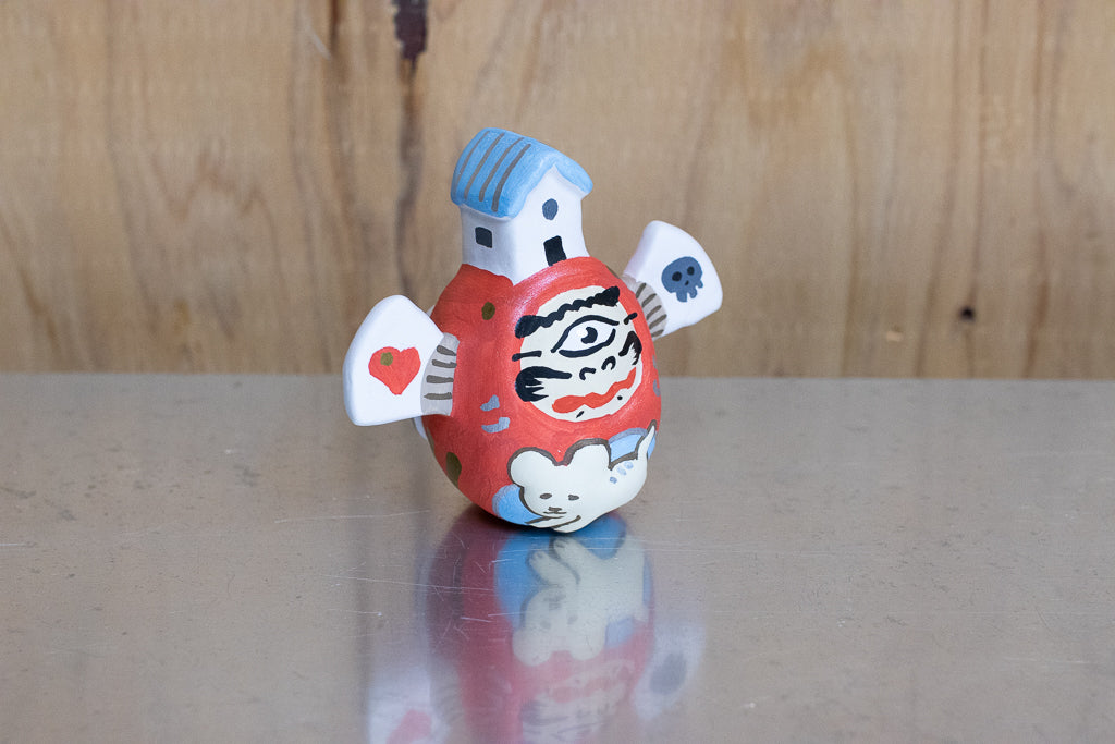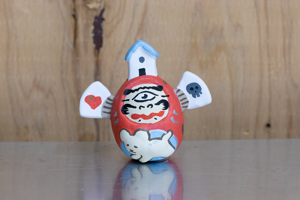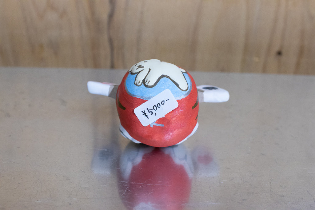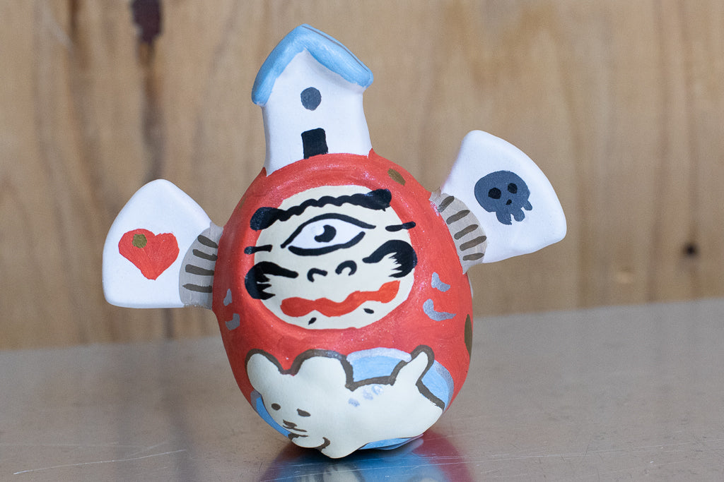 油絵画家の佐藤麗生さんによる張り子風のアートピース、「夢民芸」です。