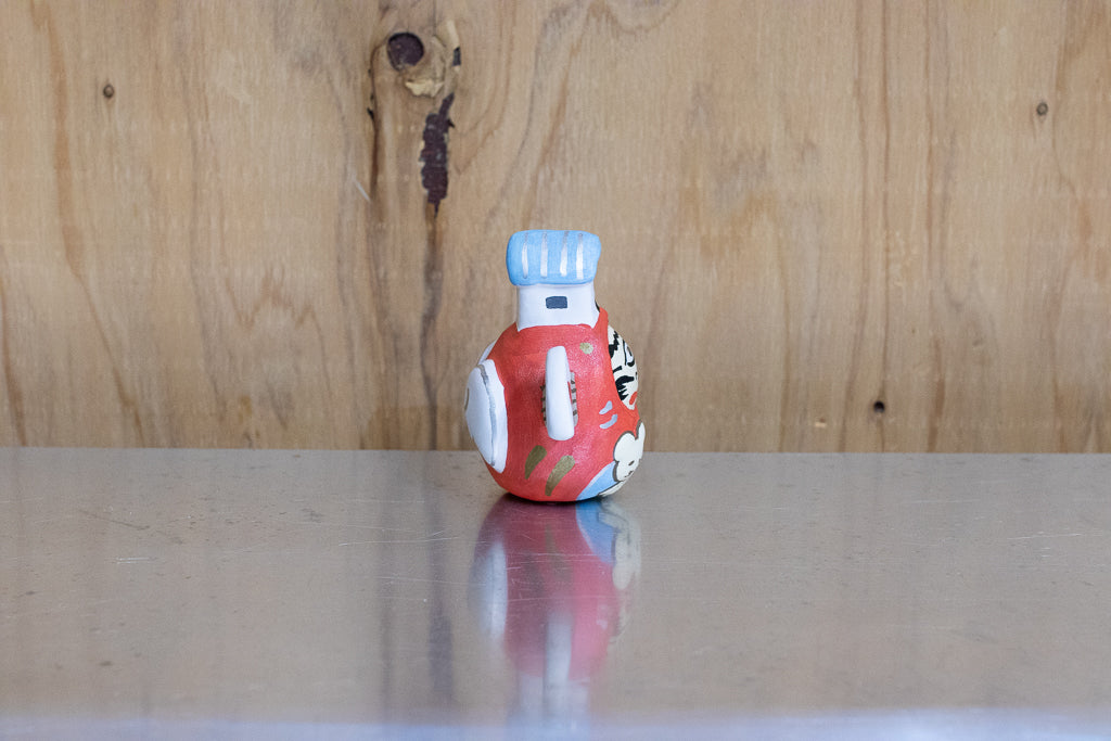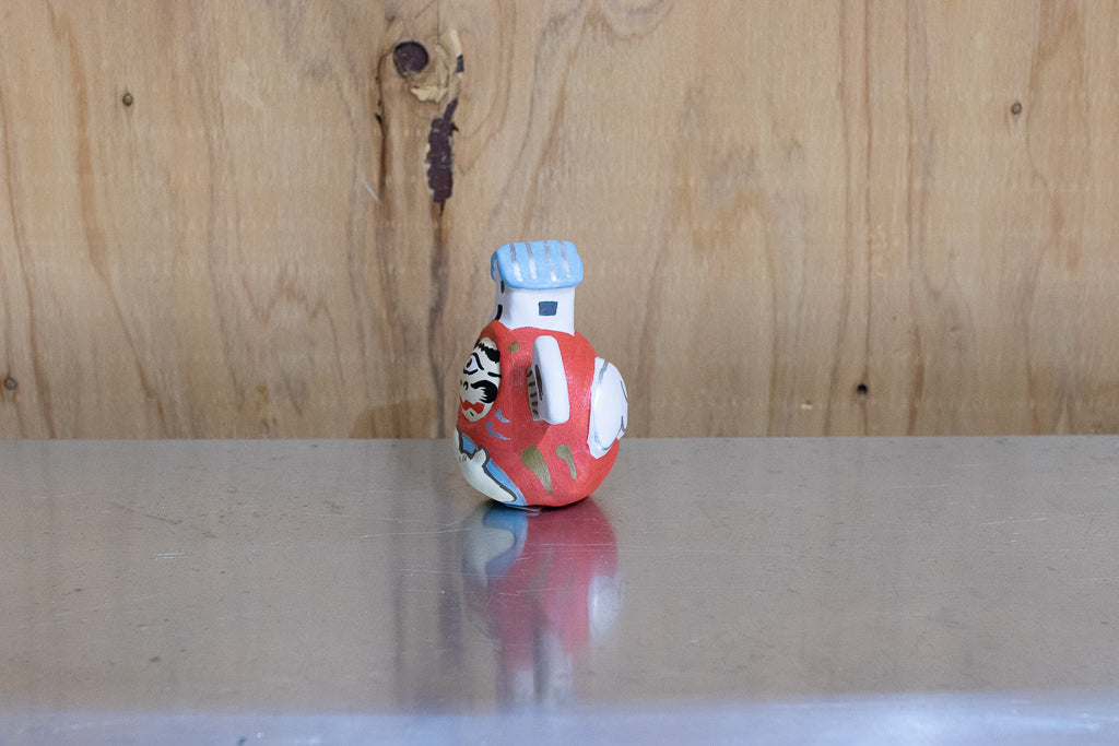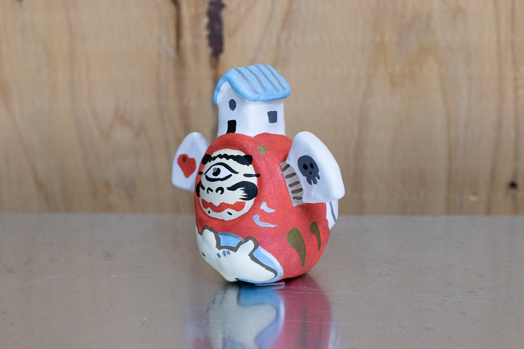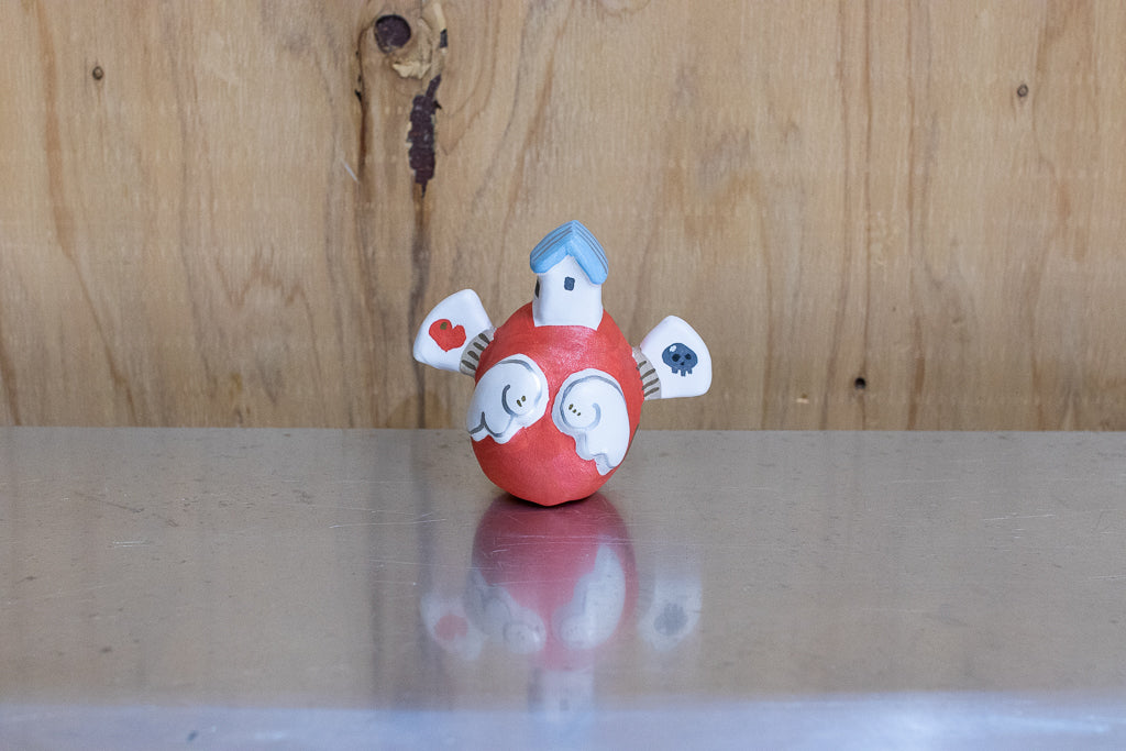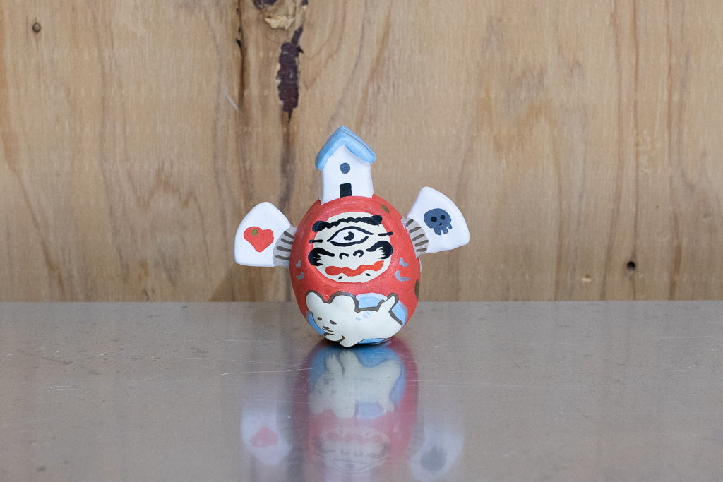 油絵画家の佐藤麗生さんによる張り子風のアートピース、「夢民芸」です。