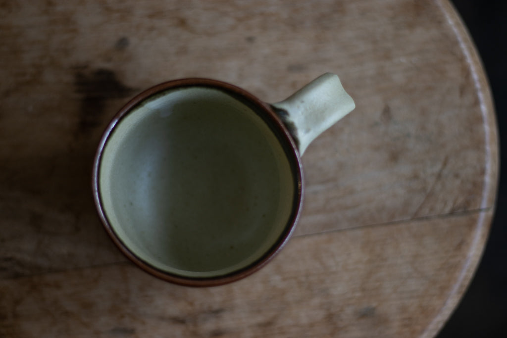 A warm mug with a plump silhouette and rustic glaze. The dripping feel of the glaze is attractive. 200cc can easily fit in it, so you can use it conveniently.