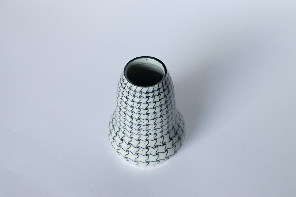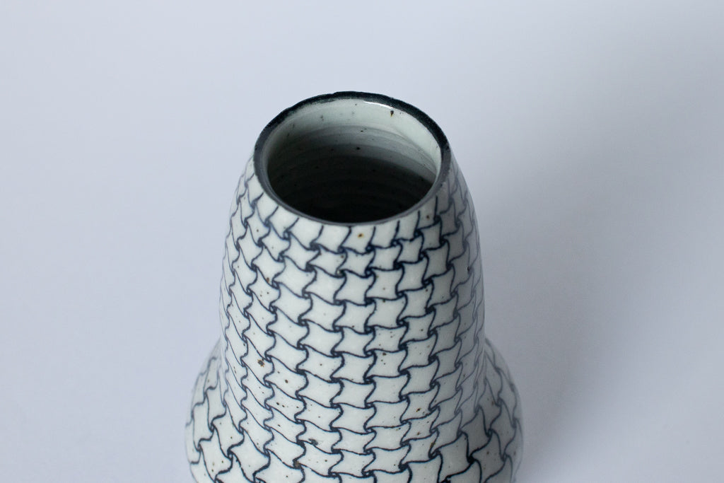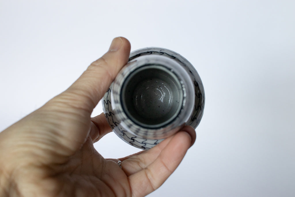 This is Makihara's masterpiece. After carving each line with a needle, the grooves are filled with clay to create the pattern. It's a bit dizzying to think about the time and effort it takes to apply glaze to the surface, top, and bottom, but thanks to that process, it's a wonderful item that can be called a masterpiece.