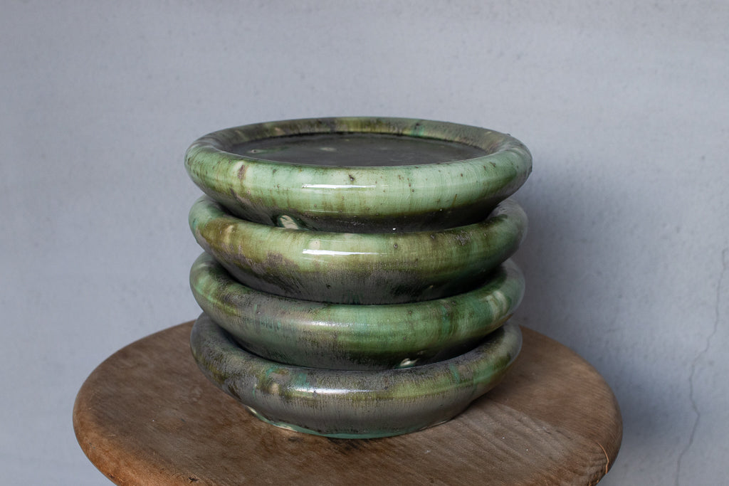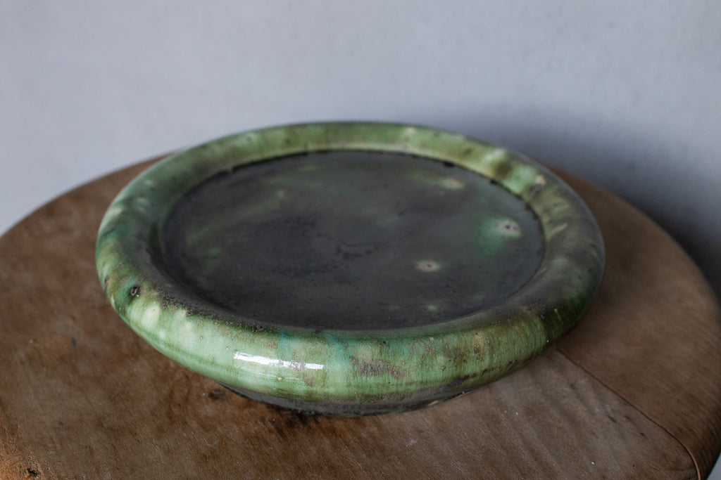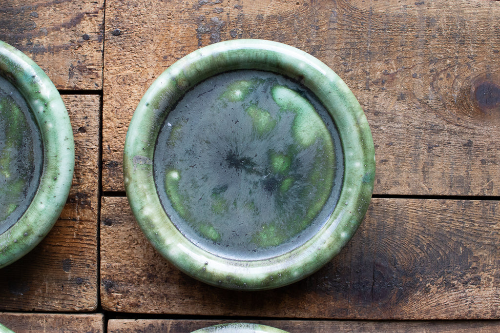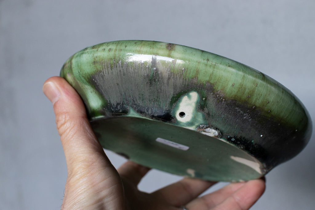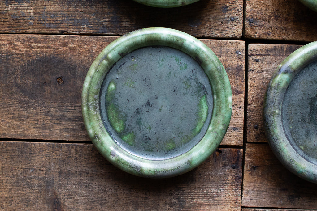 野中麟太郎さんのエアリーシリーズより、ぷっくりとしたフォルムがかわいい小皿です。立体的な造形ですが、中空になっており、持った感じは結構軽いです。食卓に少し高さが出て、良いアクセントになってくれますよ。一品料理も盛り付けやすく、飲食店さんにもよくお使いいただくアイテムです。複雑な色味のグリーンは初めて見る色でかなり良いです。