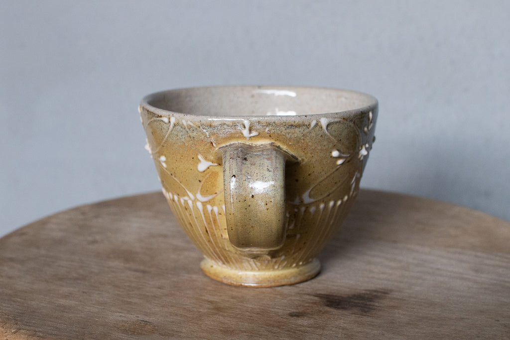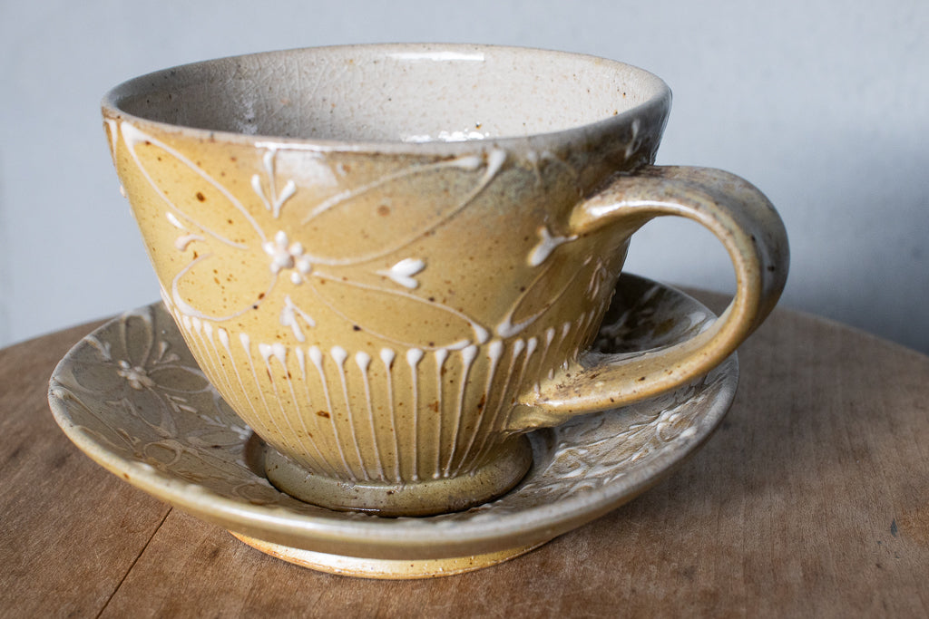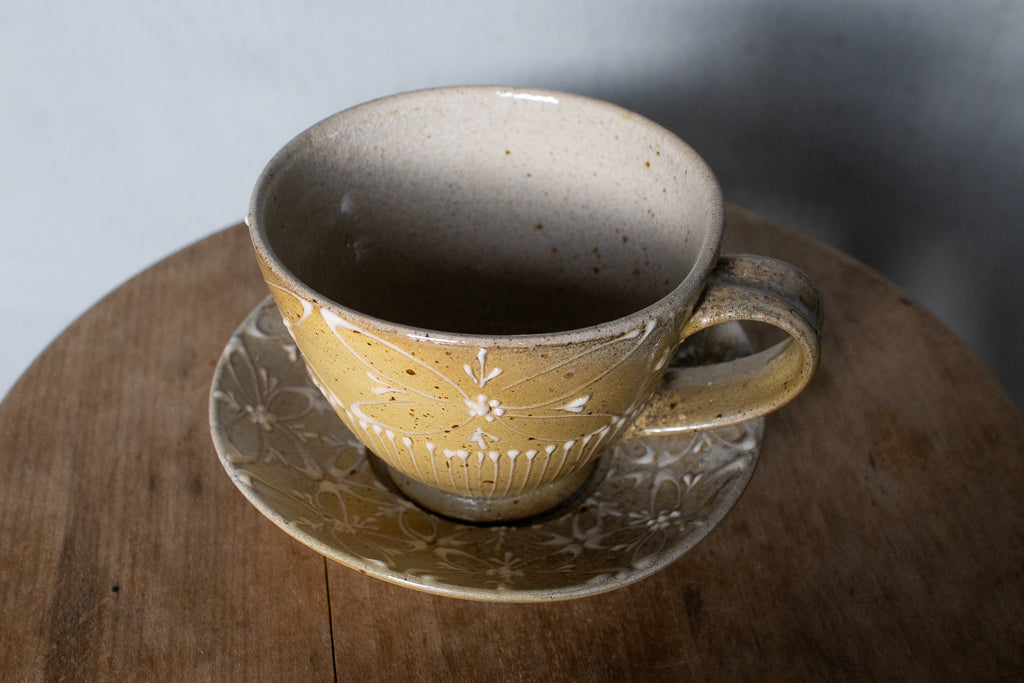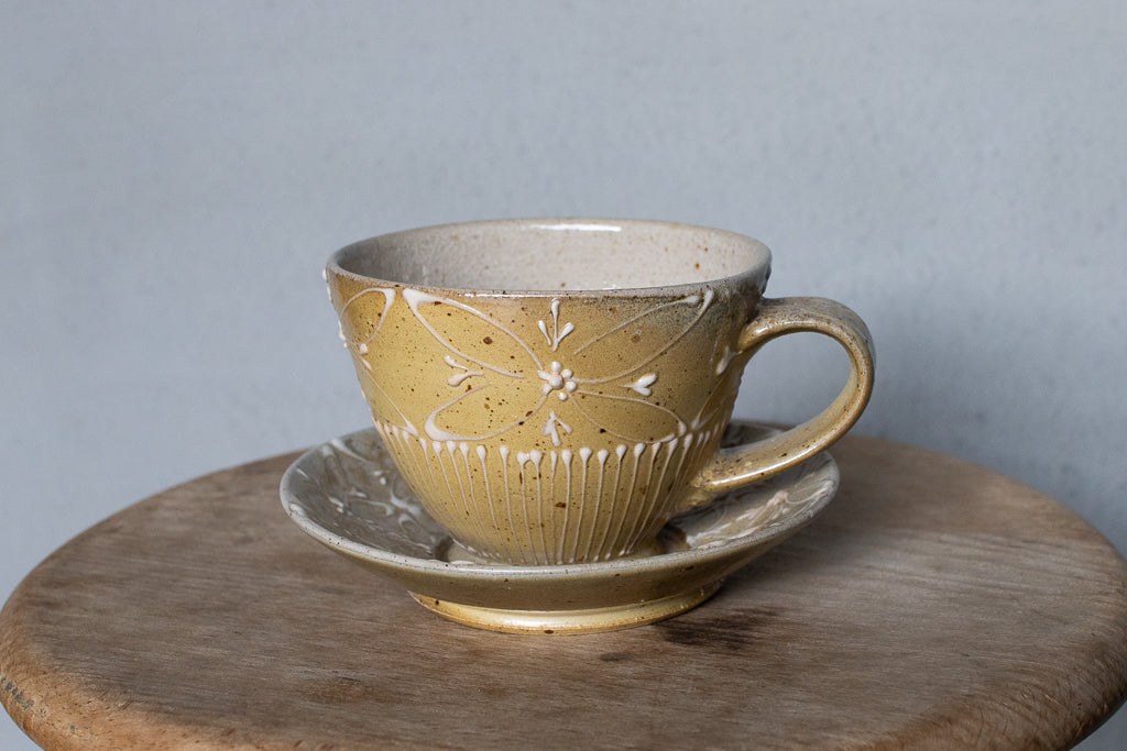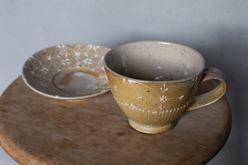 ayakaさんの土もののカップ&ソーサーです。マグカップとソーサーのセットです。