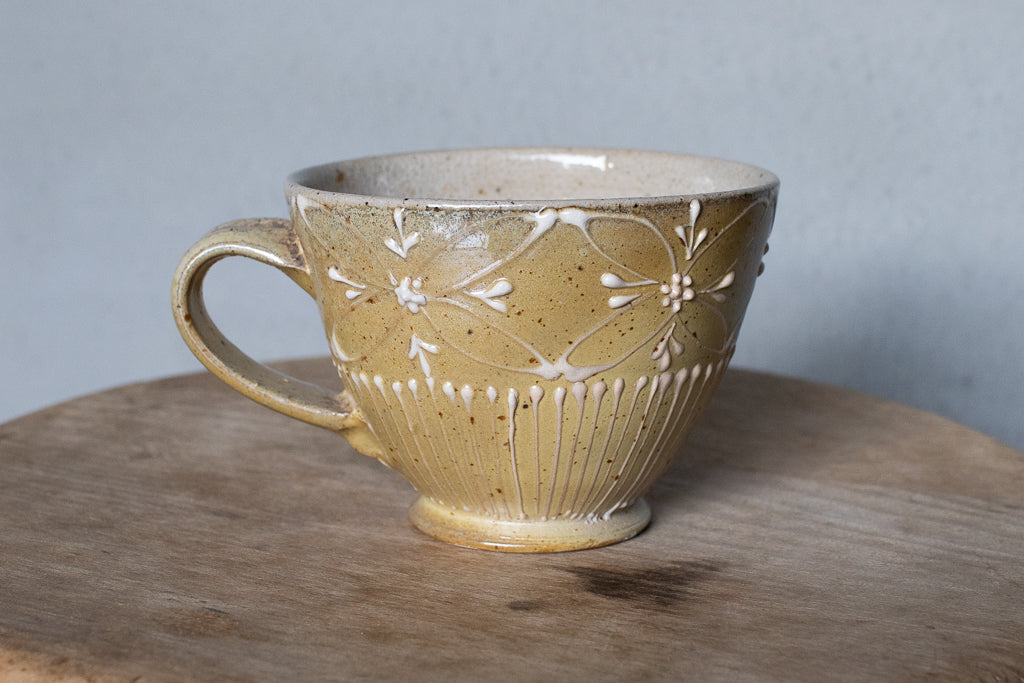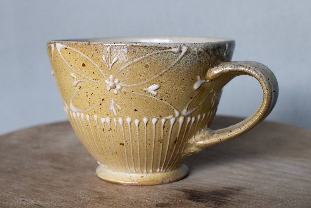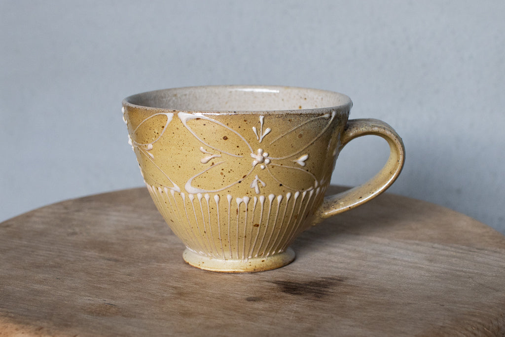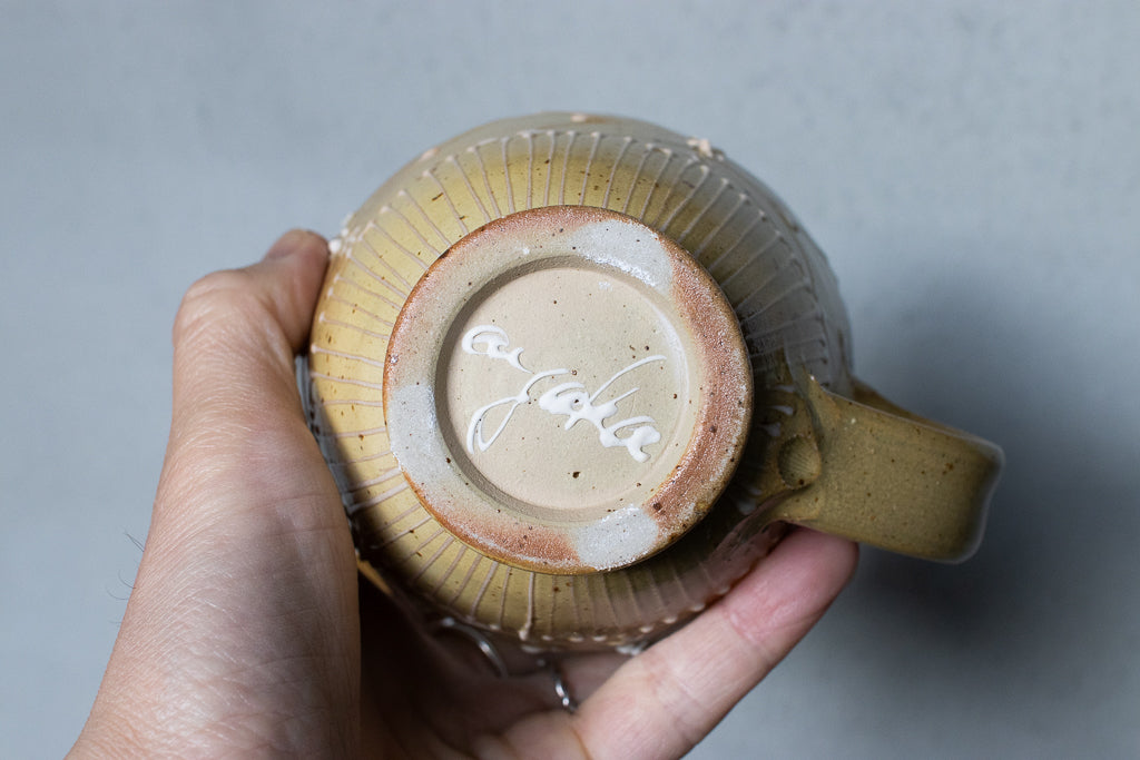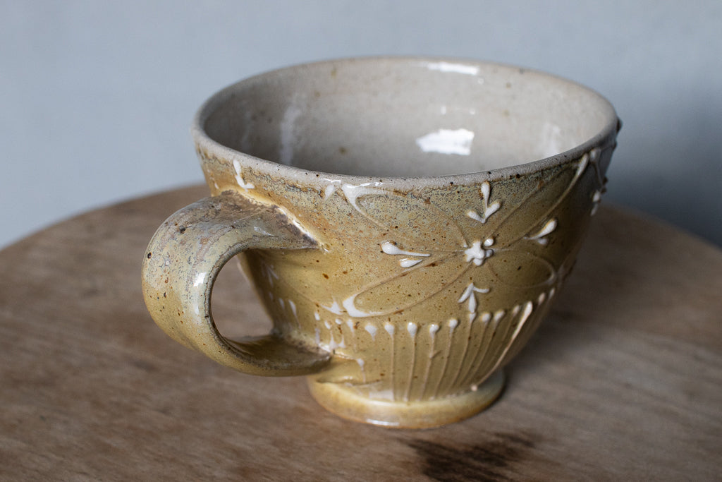 ayakaさんの土もののカップ&ソーサーです。マグカップとソーサーのセットです。