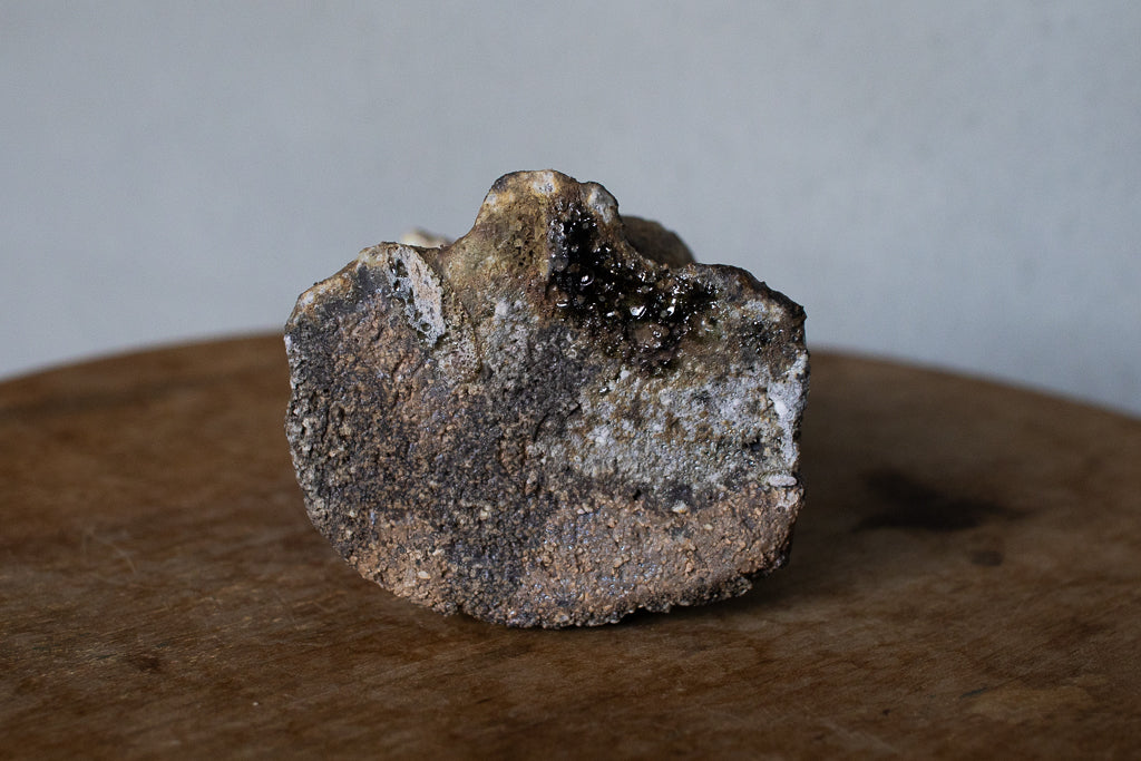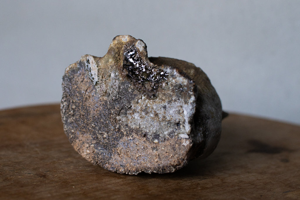 2020年頃から氏が取り組んでいるトルコブルー釉薬×薪窯焼成の作品。こちらは先日無事築窯された高橋さん自作のトレインキルンの記念すべき初窯の作品です。