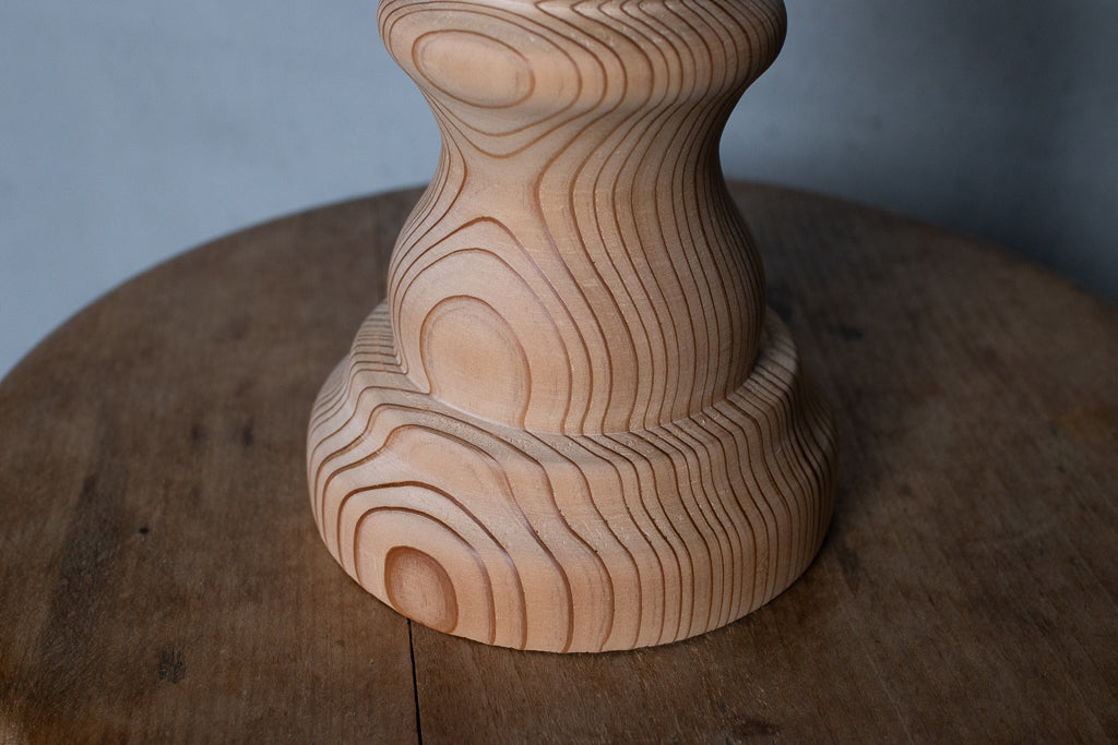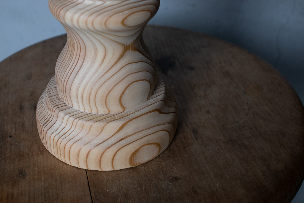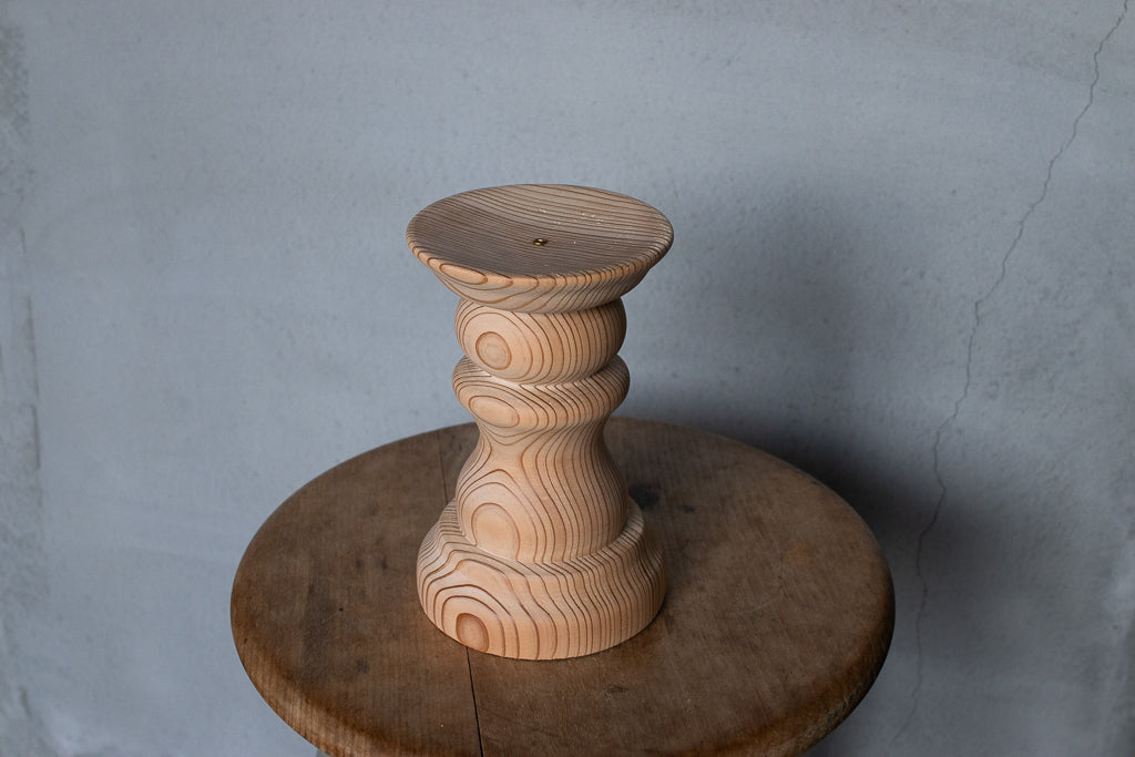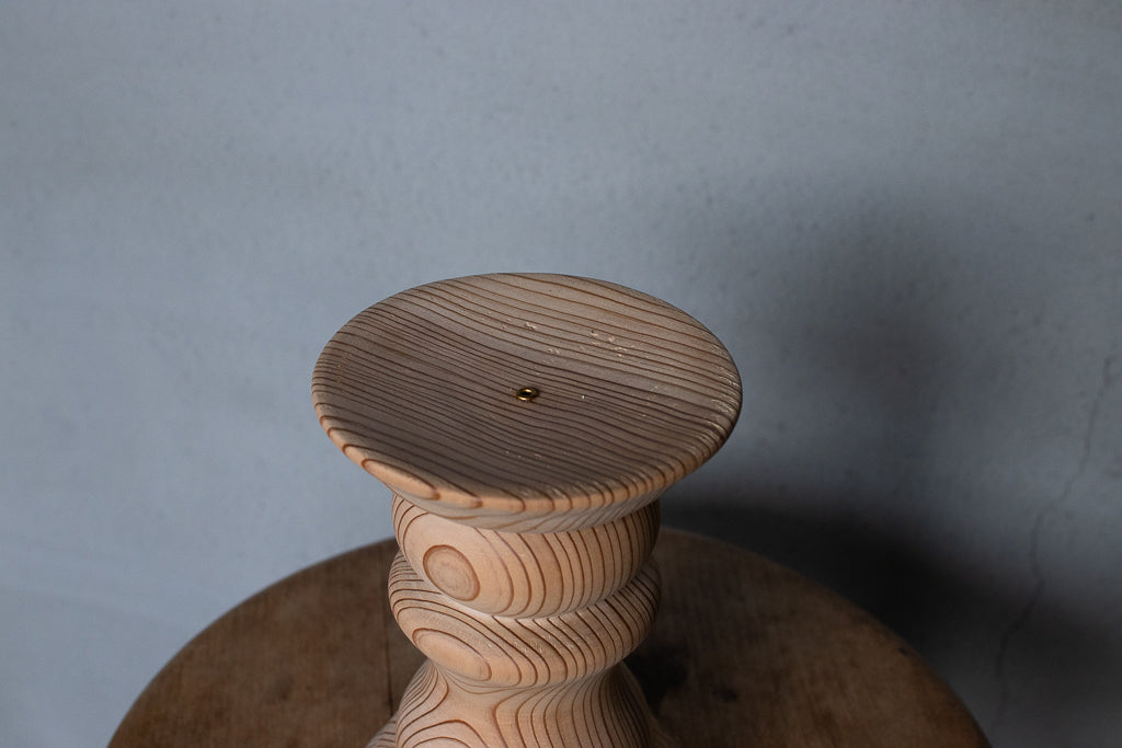 ブランドディレクターのアンジーがひとつひとつ杉の間伐材を旋盤で削りだし造形するインセンスホルダーは完全一点ものの作品です。