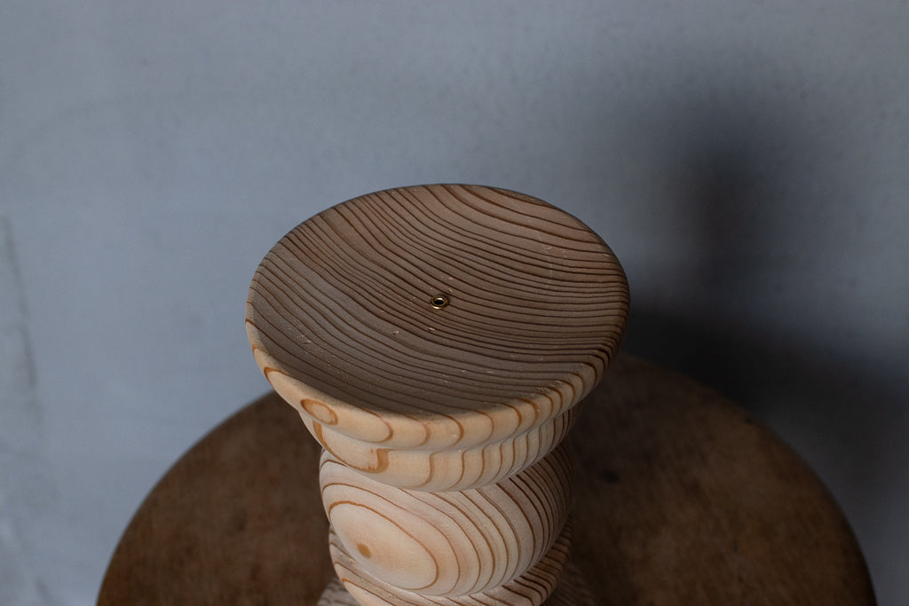ブランドディレクターのアンジーがひとつひとつ杉の間伐材を旋盤で削りだし造形するインセンスホルダーは完全一点ものの作品です。