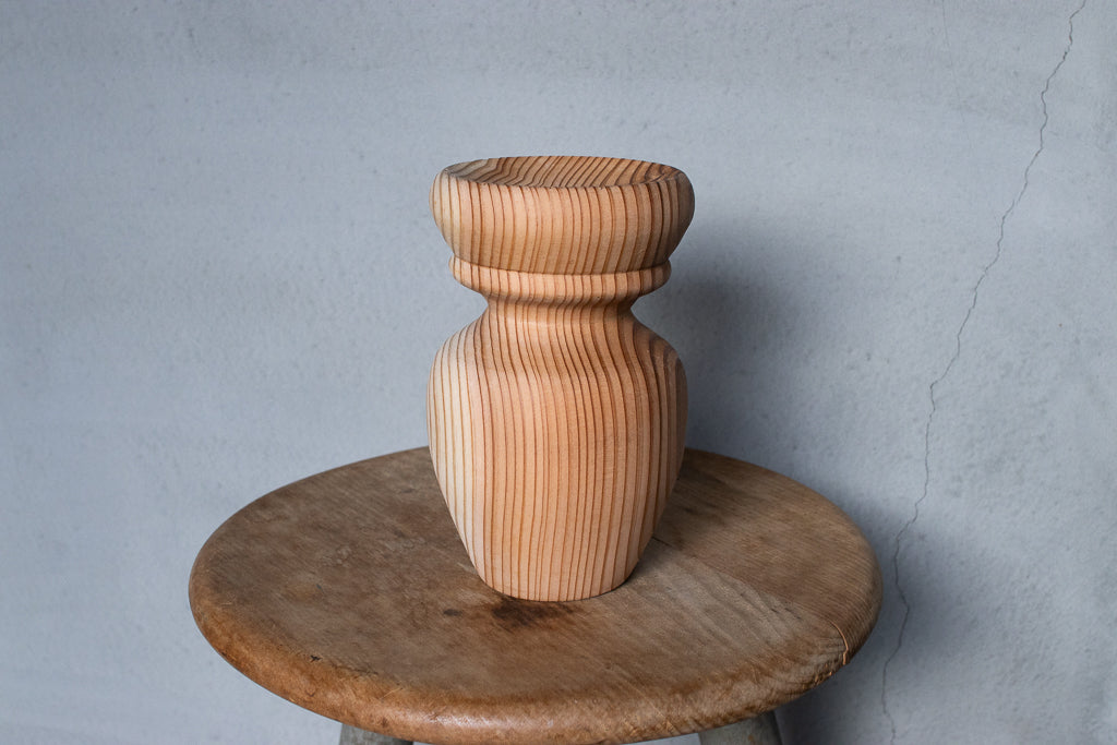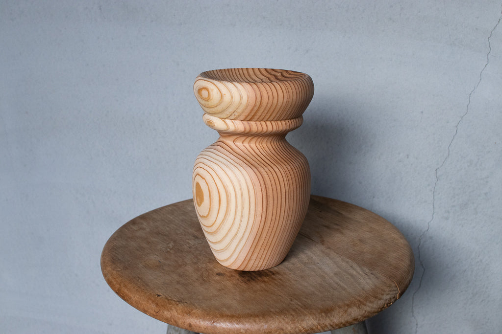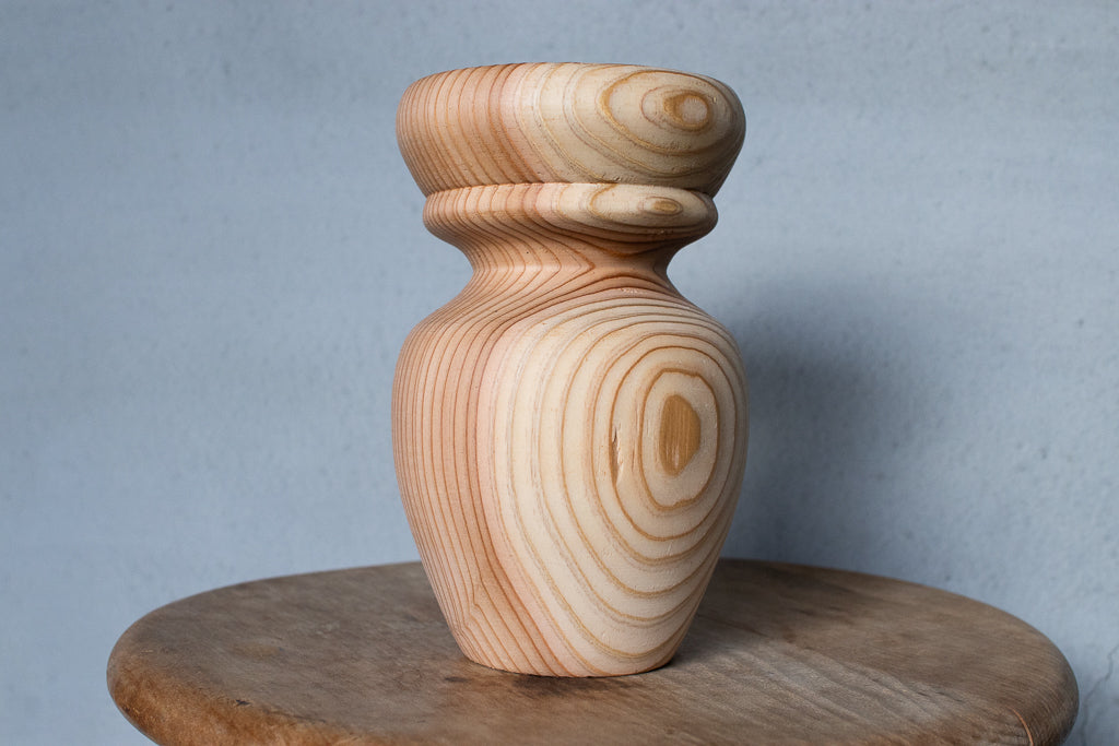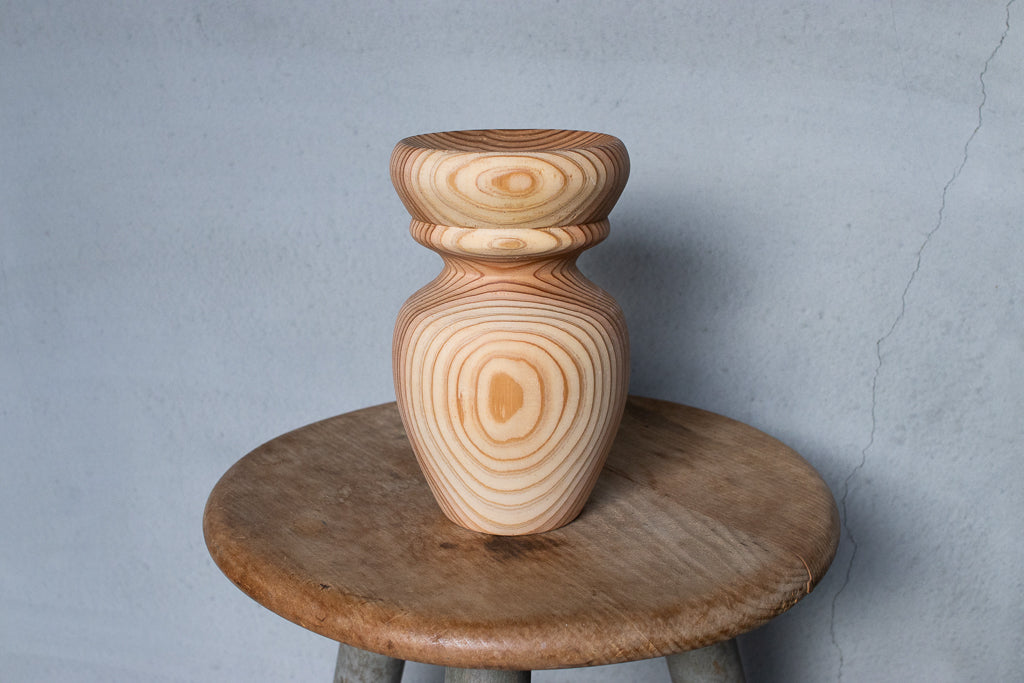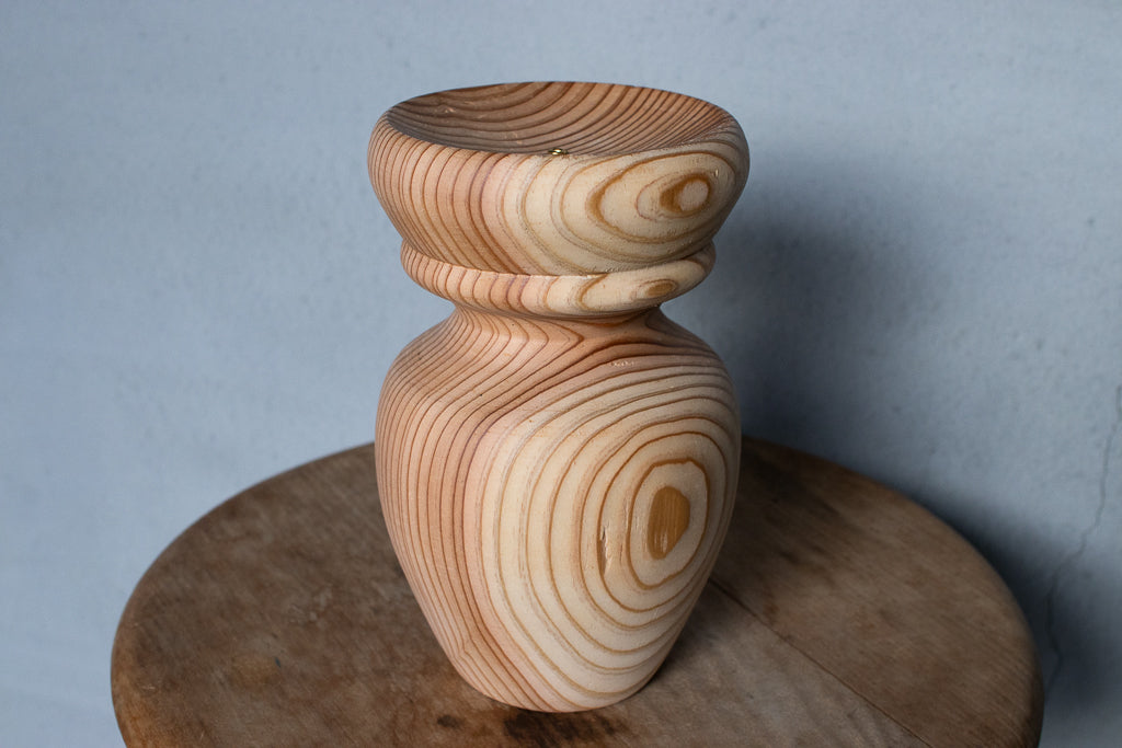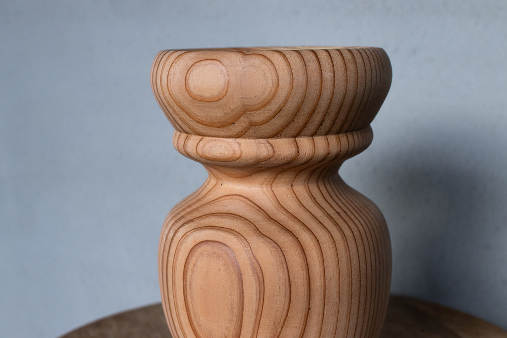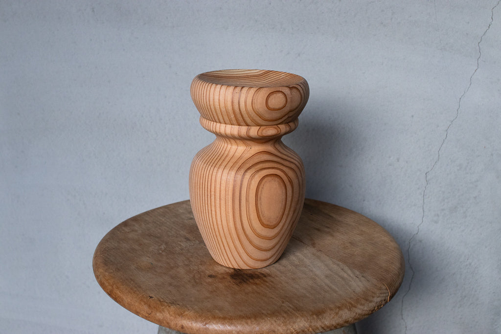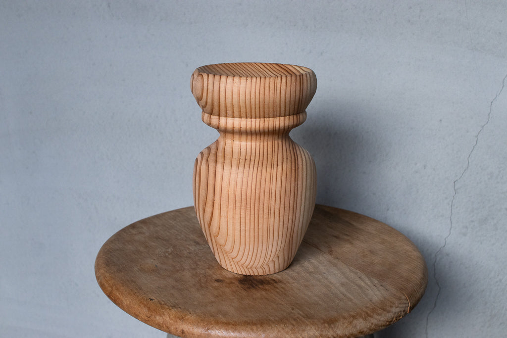 ブランドディレクターのアンジーがひとつひとつ杉の間伐材を旋盤で削りだし造形するインセンスホルダーは完全一点ものの作品です。ポップアップの際には、お香立てとしてはもちろんアクセサリーなどの小物置きとして使うという方もたくさんいらっしゃいました。単体で飾っておくだけでもサマになる作品です。
