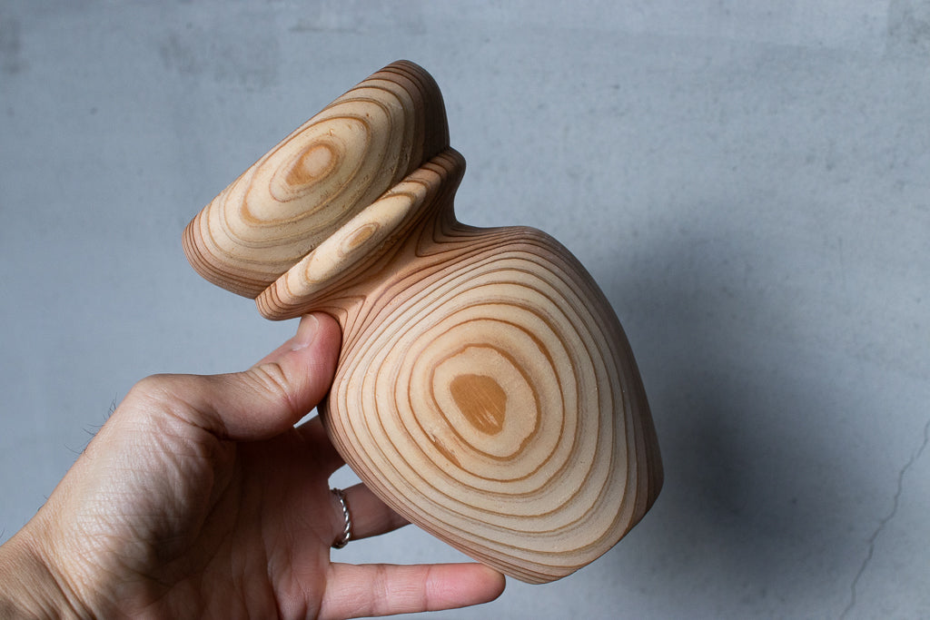 こちらは新作の”Type-B”。削りの工程を簡略化することでより手に取りやすい価格に設定されたタイプです。滑らかなシェイプで存在感があり、スタイリッシュなこけしのよう。これはこれでいいですね!