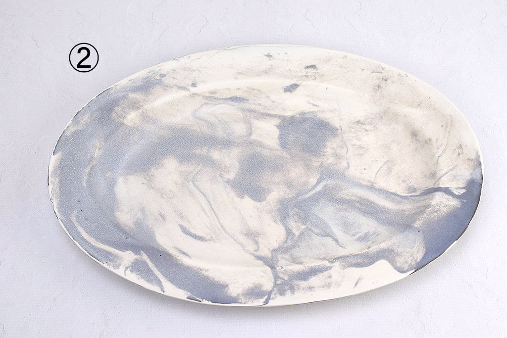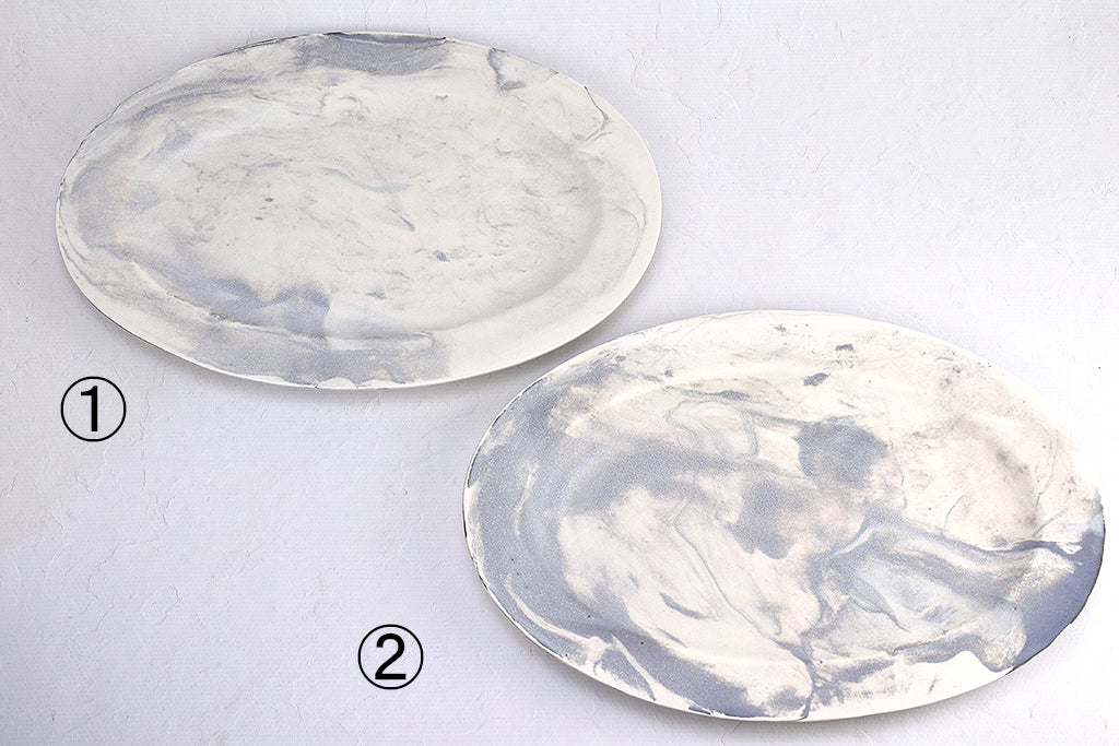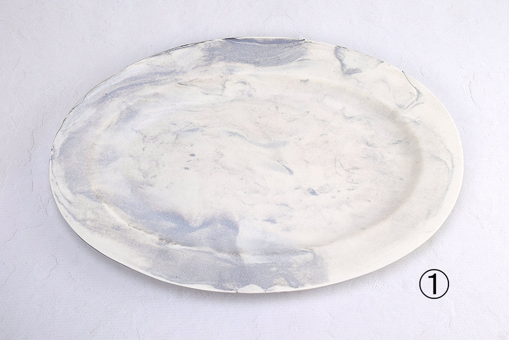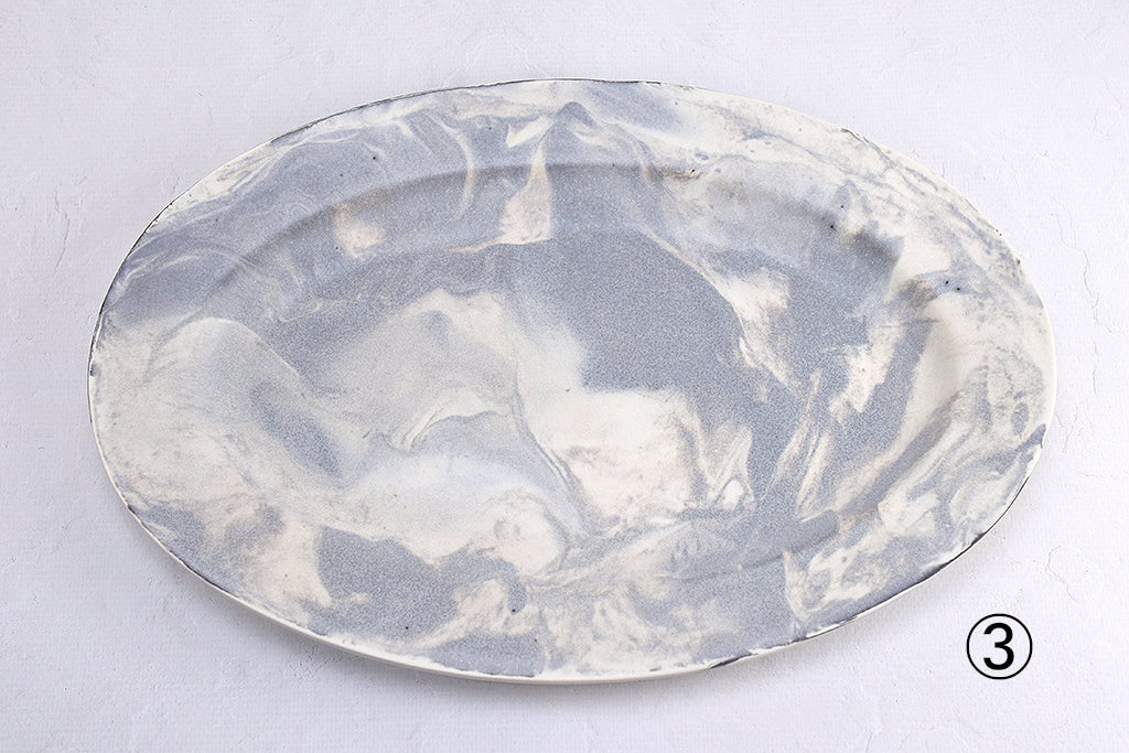 うつわボーメ / マーブル リム オーバル皿 L グレー