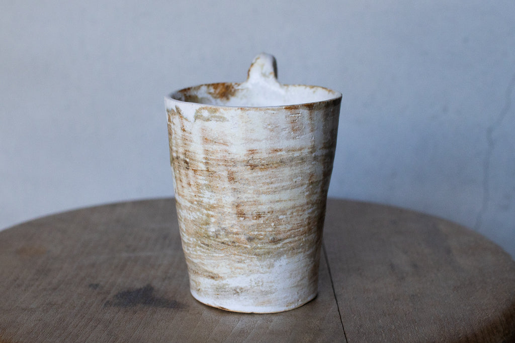 絵画的なテクスチャにユニークなハンドルの組み合わせがアートピースのような趣も感じさせるイェンさんの代表的な作品です。