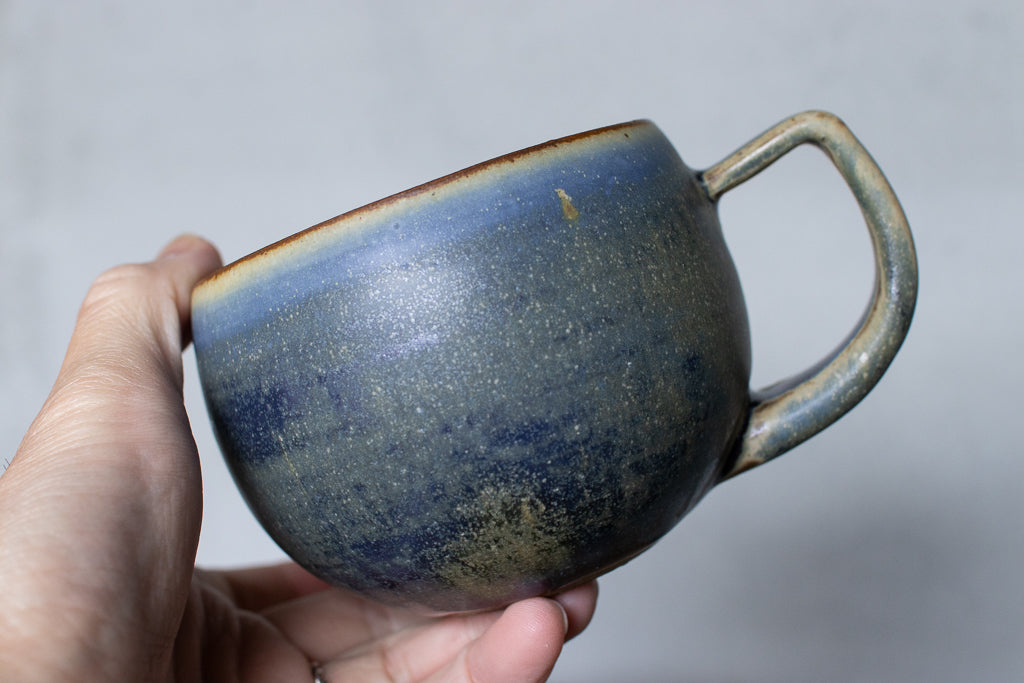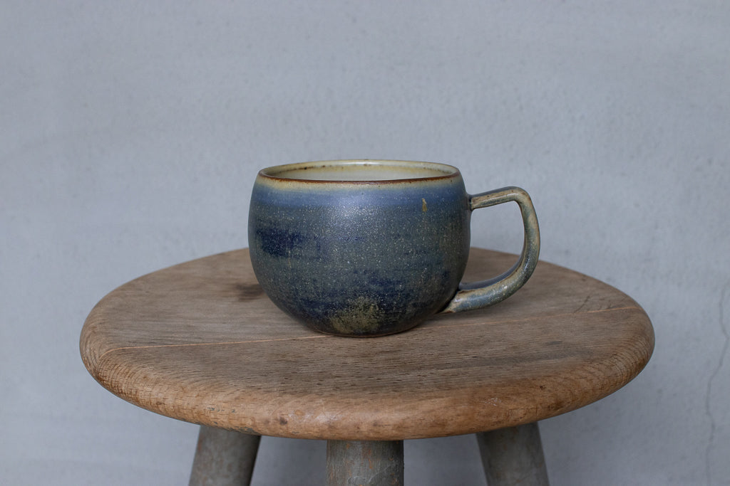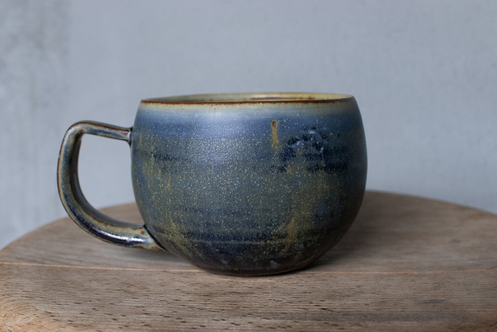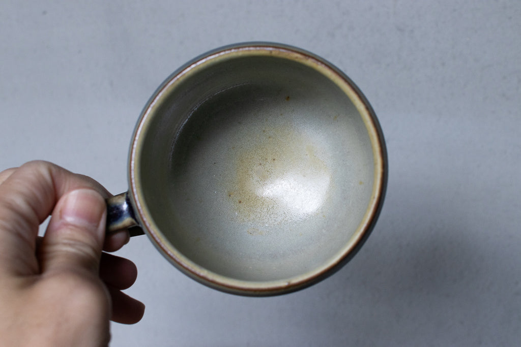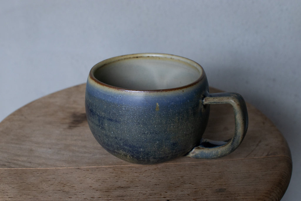 岐阜県飛騨のしずく窯 高山忠博氏のあおまるマグカップです。こちらは見込みの色が通常のグレーの釉薬のタイプ。