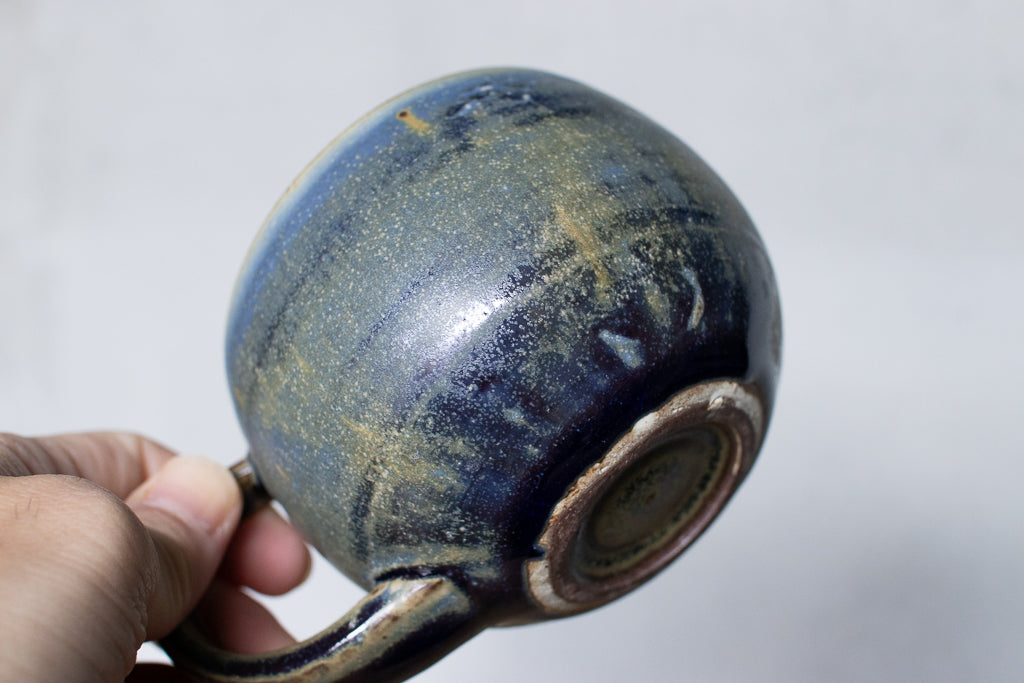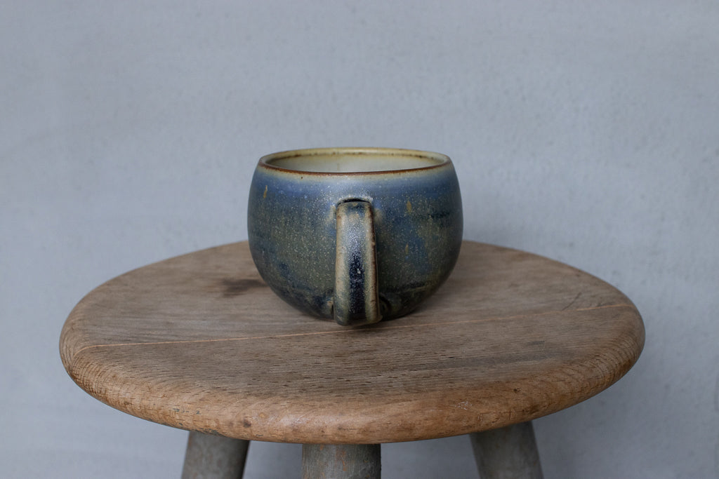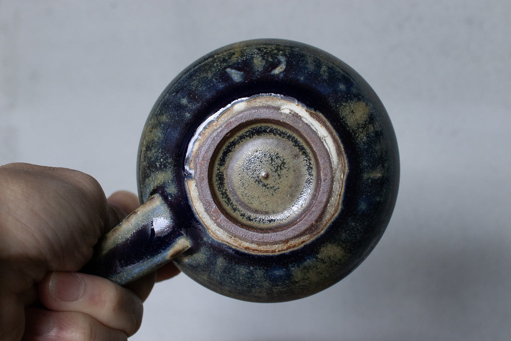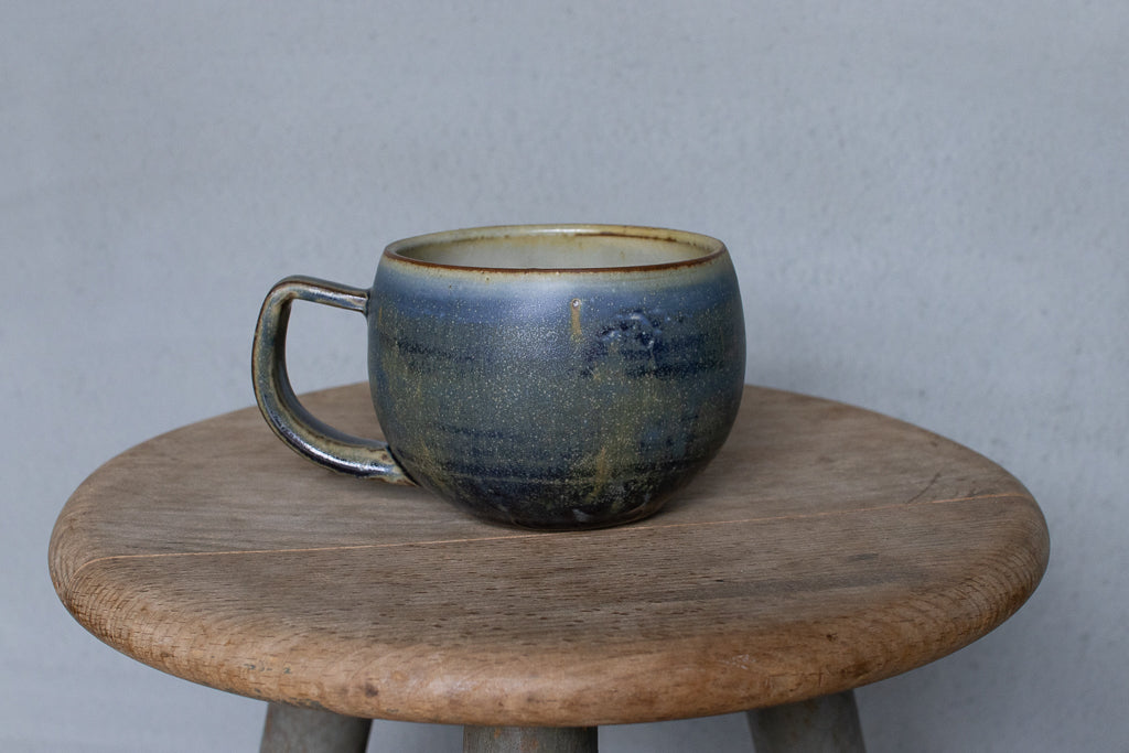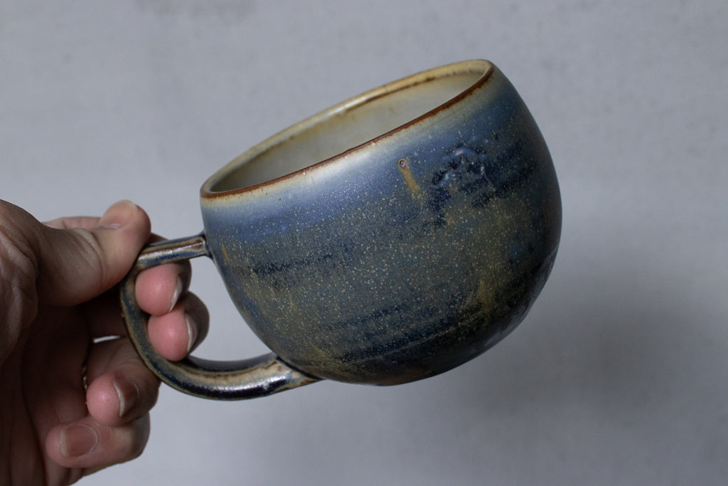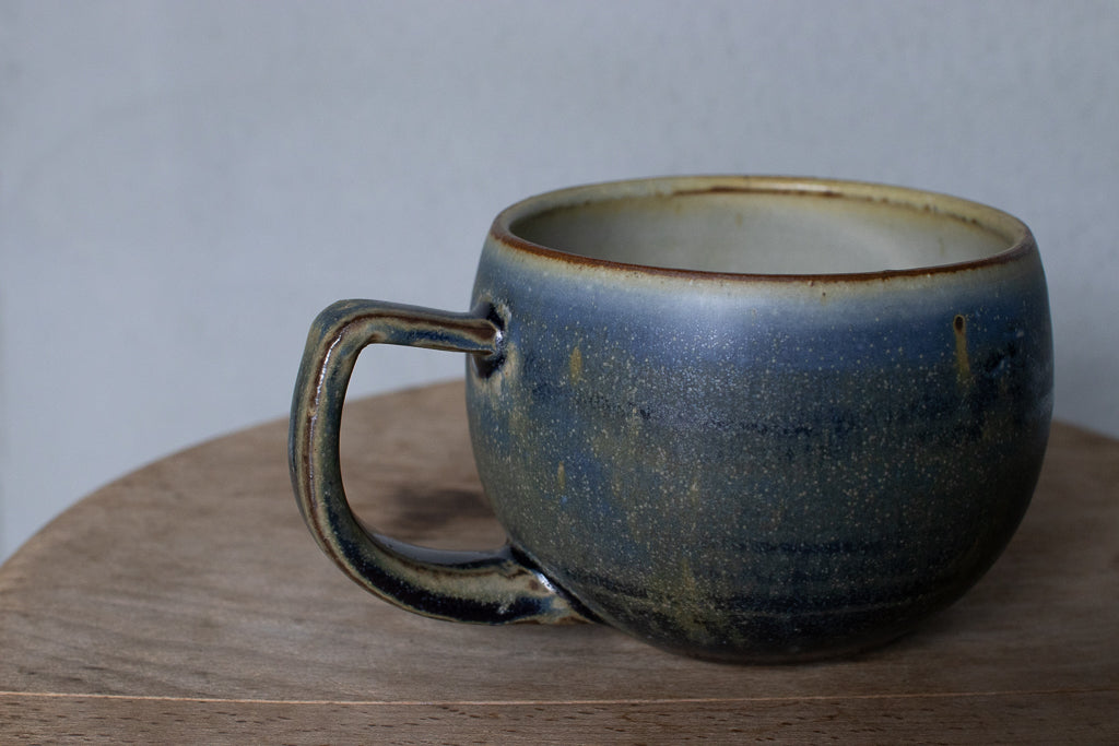 岐阜県飛騨のしずく窯 高山忠博氏のあおまるマグカップです。こちらは見込みの色が通常のグレーの釉薬のタイプ。