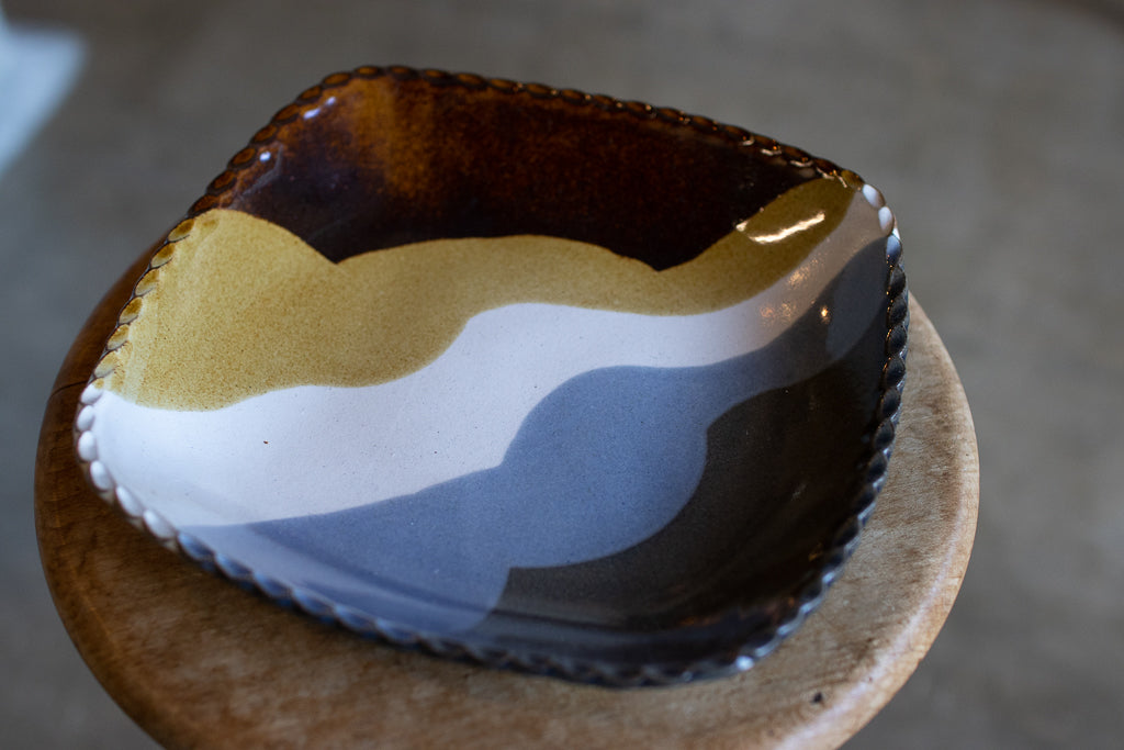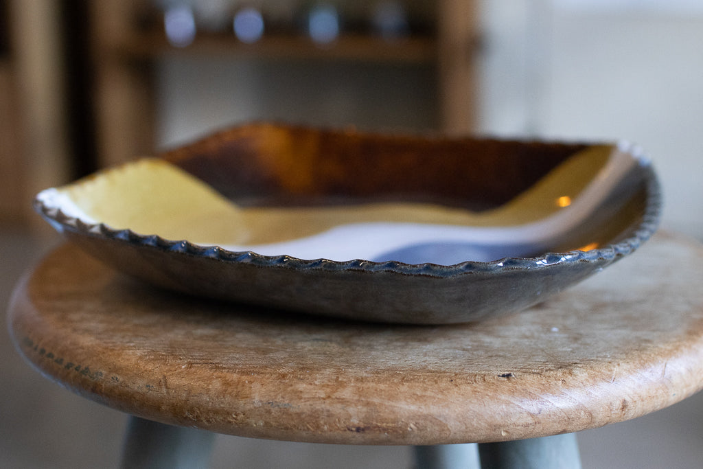 リムが立ち上がりほんのり深さのある角皿。食卓のアクセントになってくれそうです。