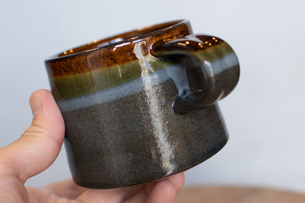 程よいサイズ感と台形のシルエットがかわいいカップです。ハンドルの付き方もキュートですね。