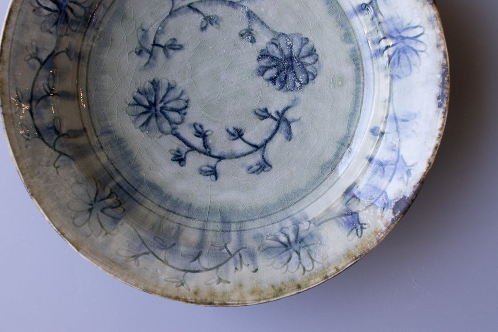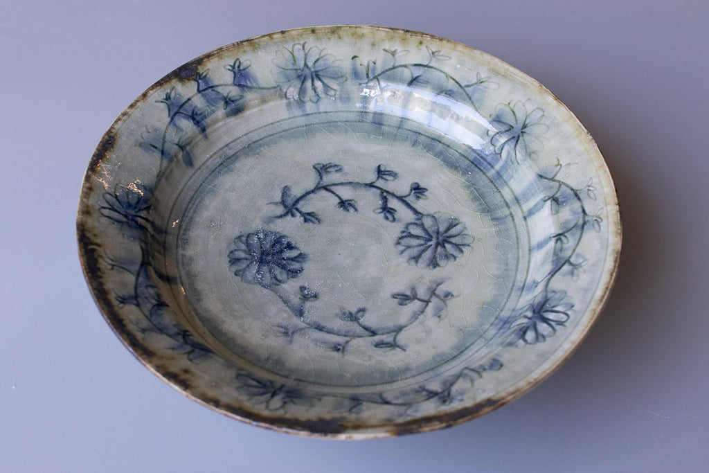 安南手(あんなんで)というベトナム由来の技法で制作されているシリーズ。描線を彫ってから呉須の釉薬を流し込んで焼成することで独特の滲みが生まれています。可愛らしさに渋さが加わってなんとも味わい深い逸品です。