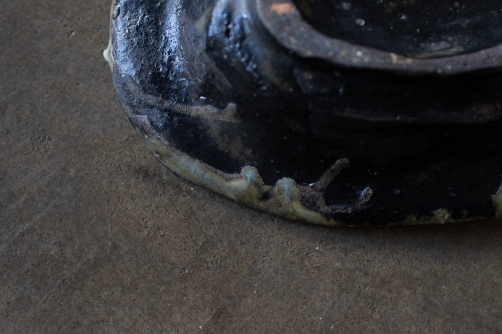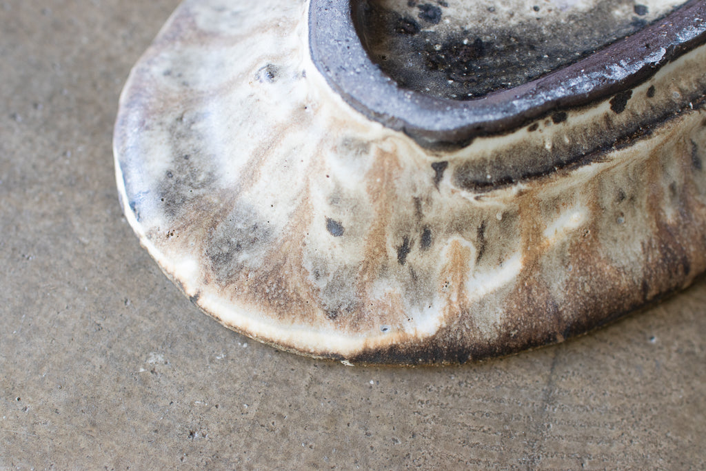 自然灰の釉薬を重ねた複雑なテクスチャ。トノイケさんお得意のテイストです。見込みに流れた釉の表情が非常に魅力的です。
