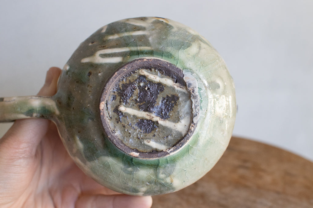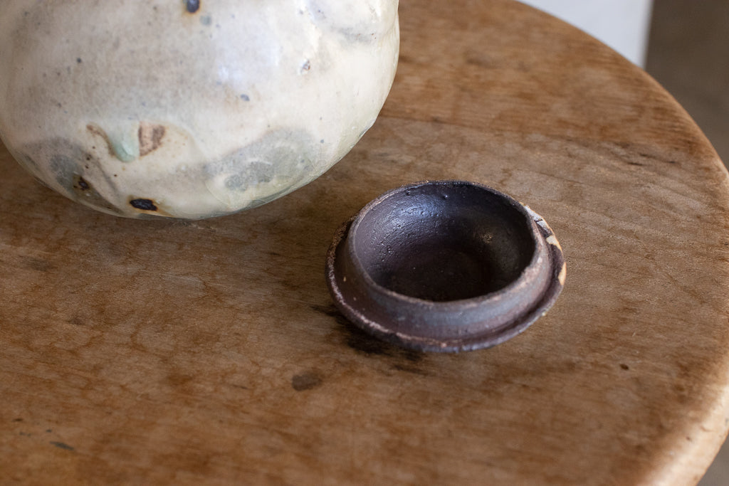 ひとりかふたりで使うのにちょうど良いイメージのサイズ感で作って頂いた横手の急須です。さすが常滑の作家さんといった感じのしっかりとした作りで実用性は抜群。もちろん茶こしもついています。自然灰の釉薬を重ねたトノイケさんらしい質感は健在。
