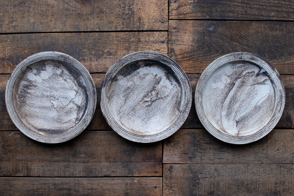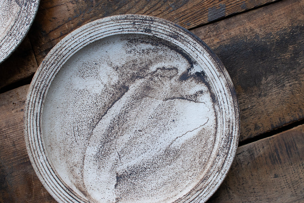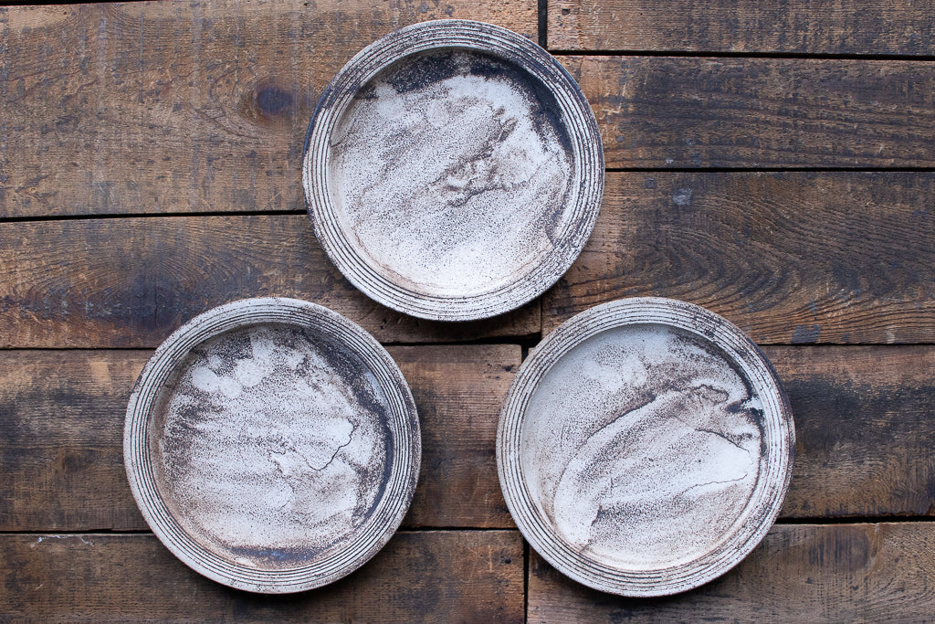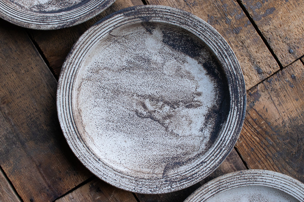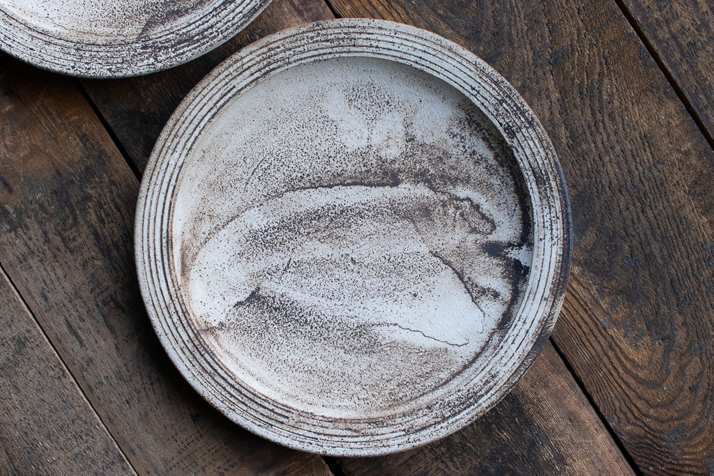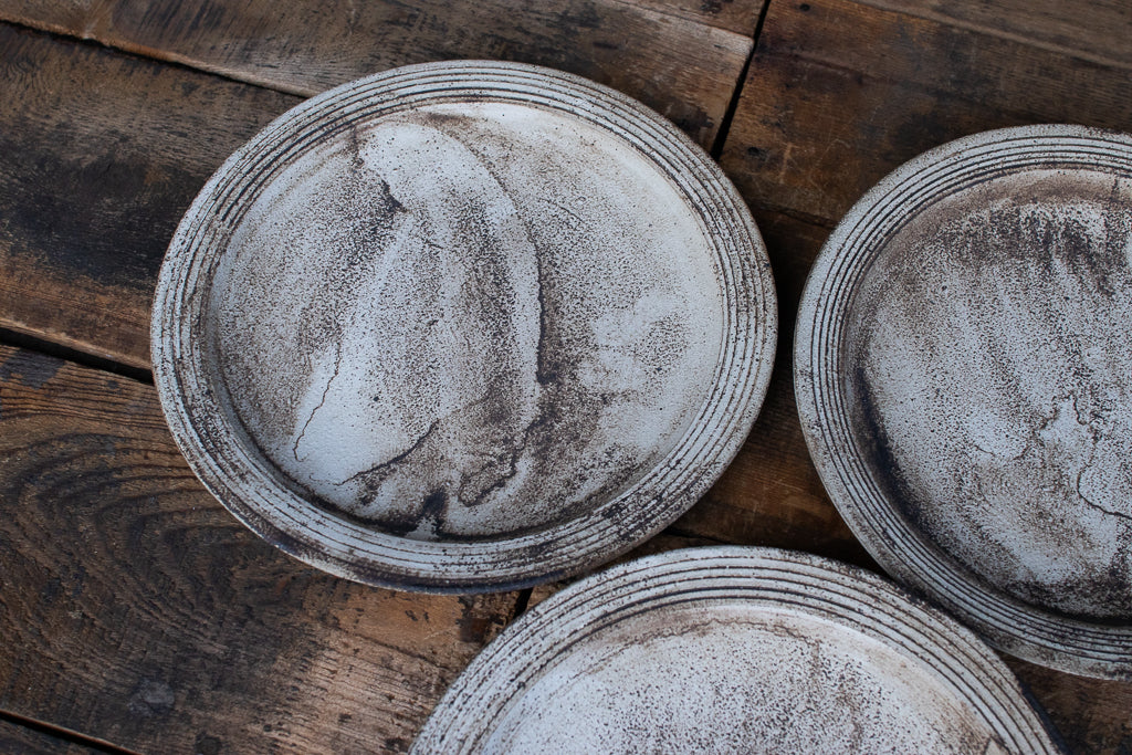 渋さを増した新テクスチャ。植木鉢で使っていた釉薬・技法を食器にも適応させたシリーズです。泥化粧を流したり、一部拭き取ったりして顕れる表情は唯一無二。