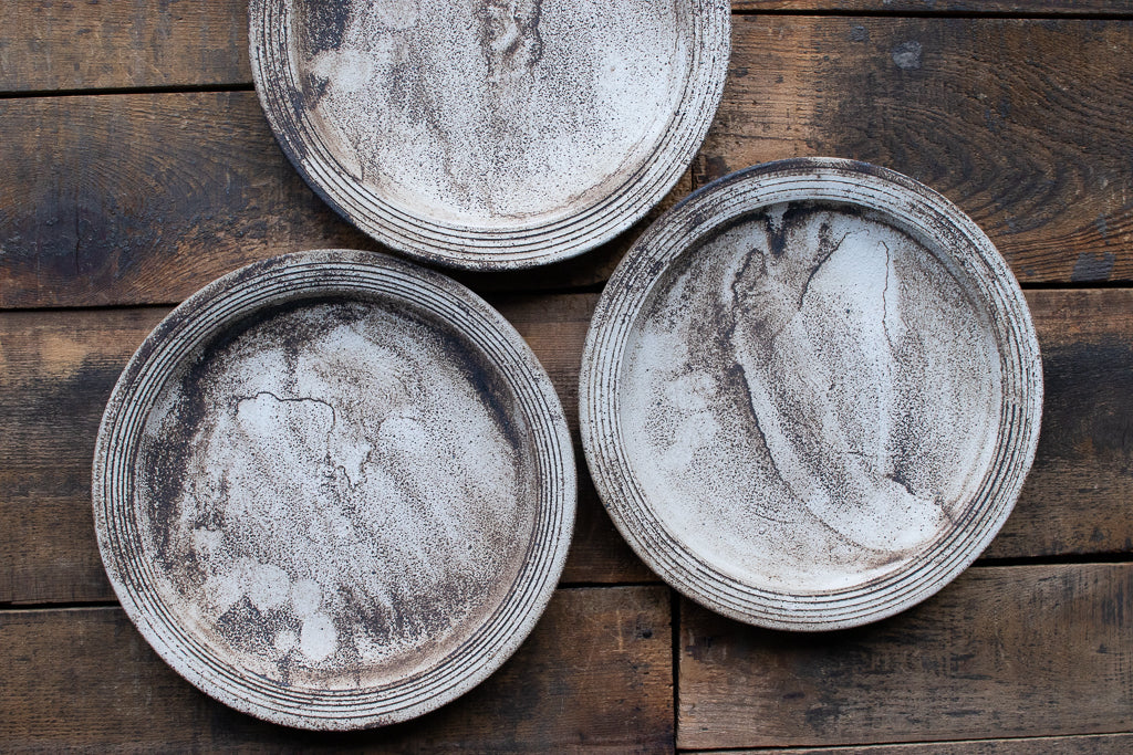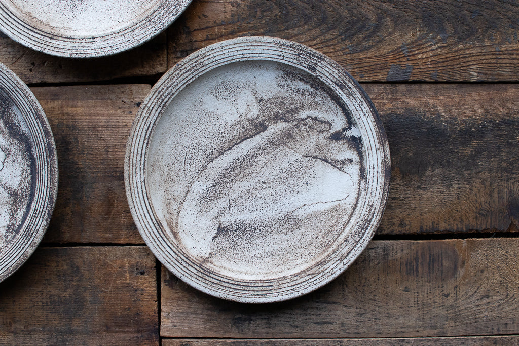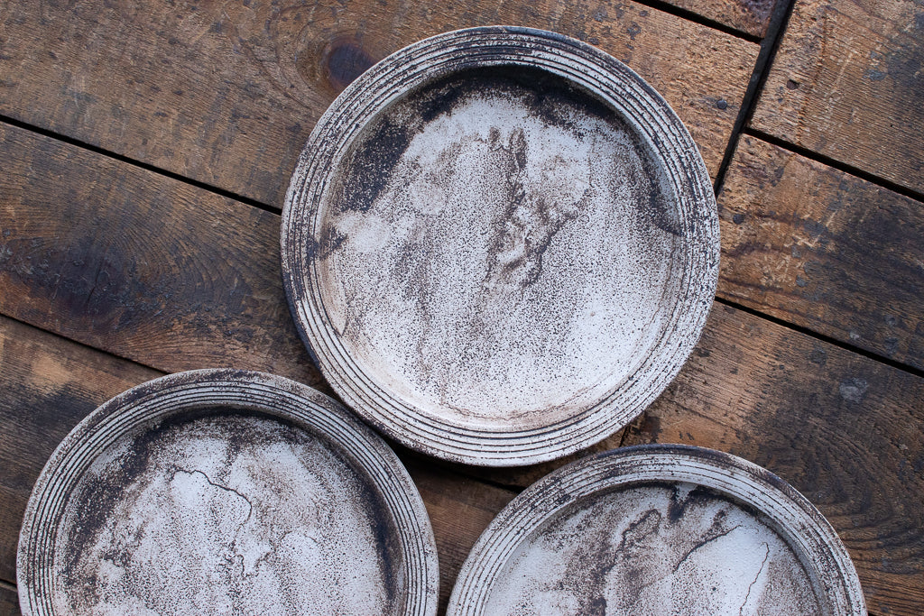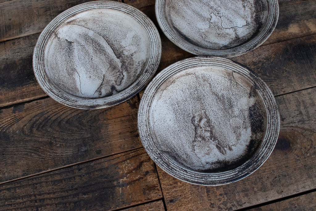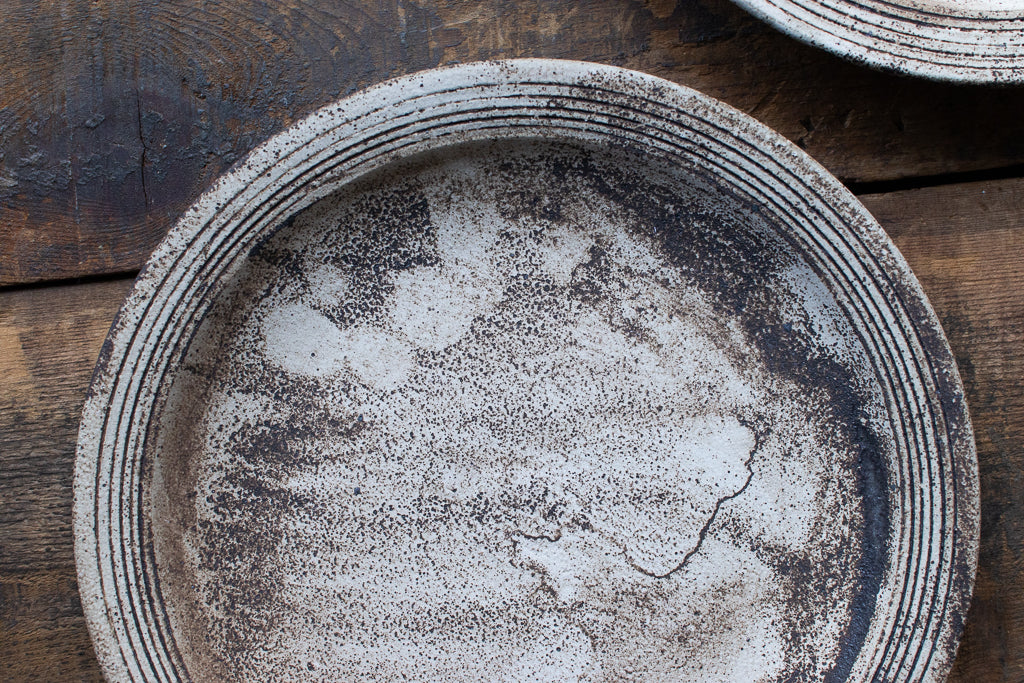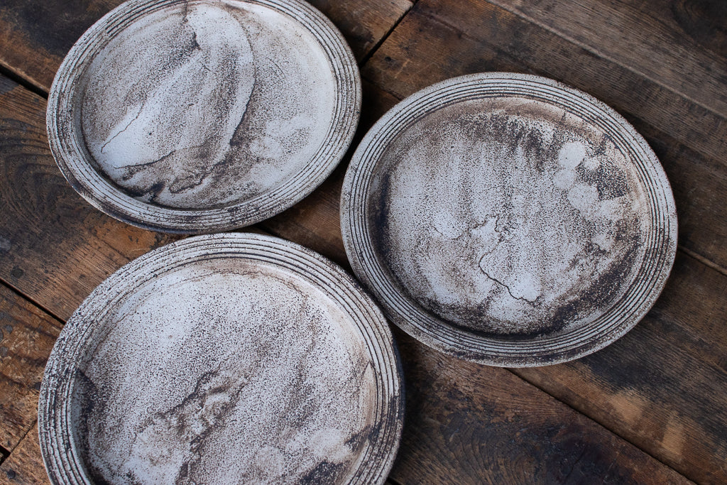 渋さを増した新テクスチャ。植木鉢で使っていた釉薬・技法を食器にも適応させたシリーズです。泥化粧を流したり、一部拭き取ったりして顕れる表情は唯一無二。