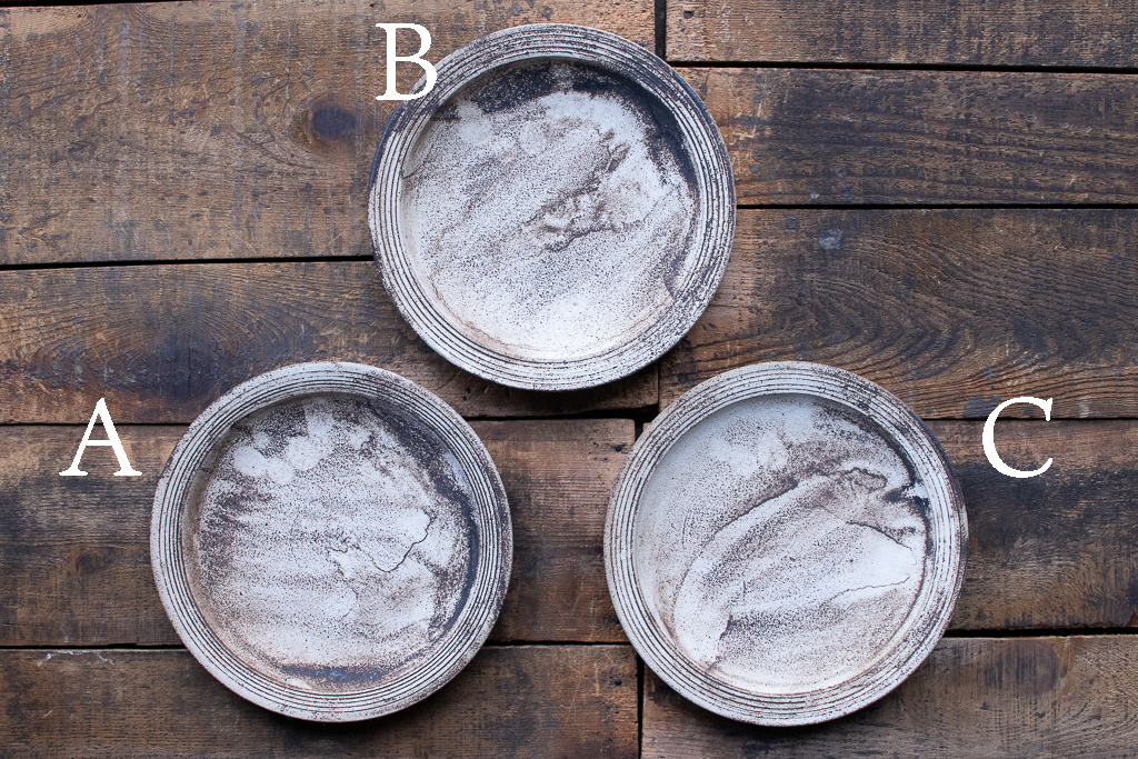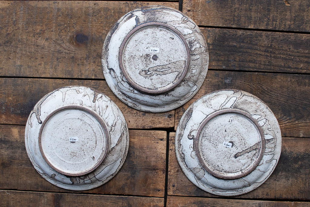 滋賀 草津 淡海陶芸研究所の山元一真さんの錆白泥 6寸リム皿です。
