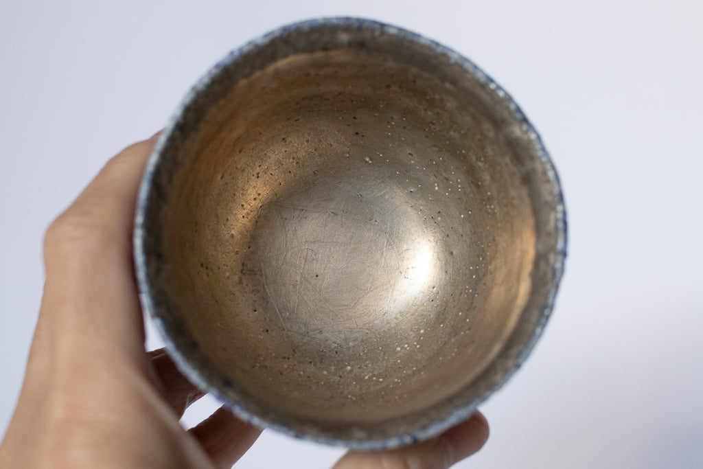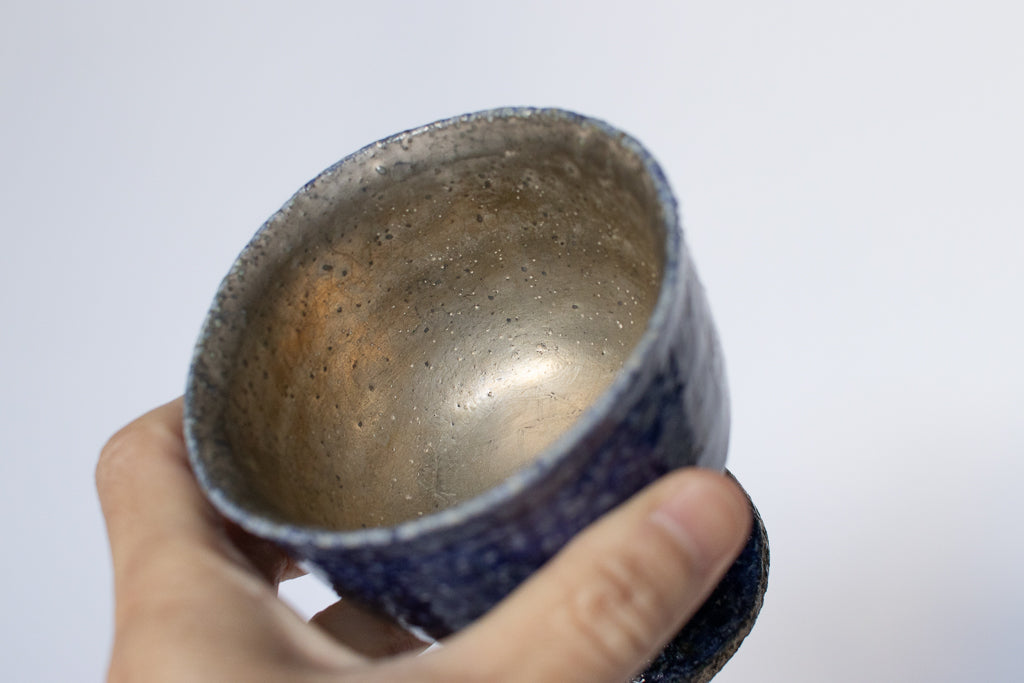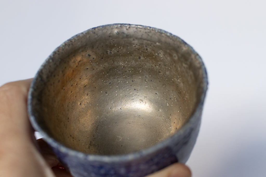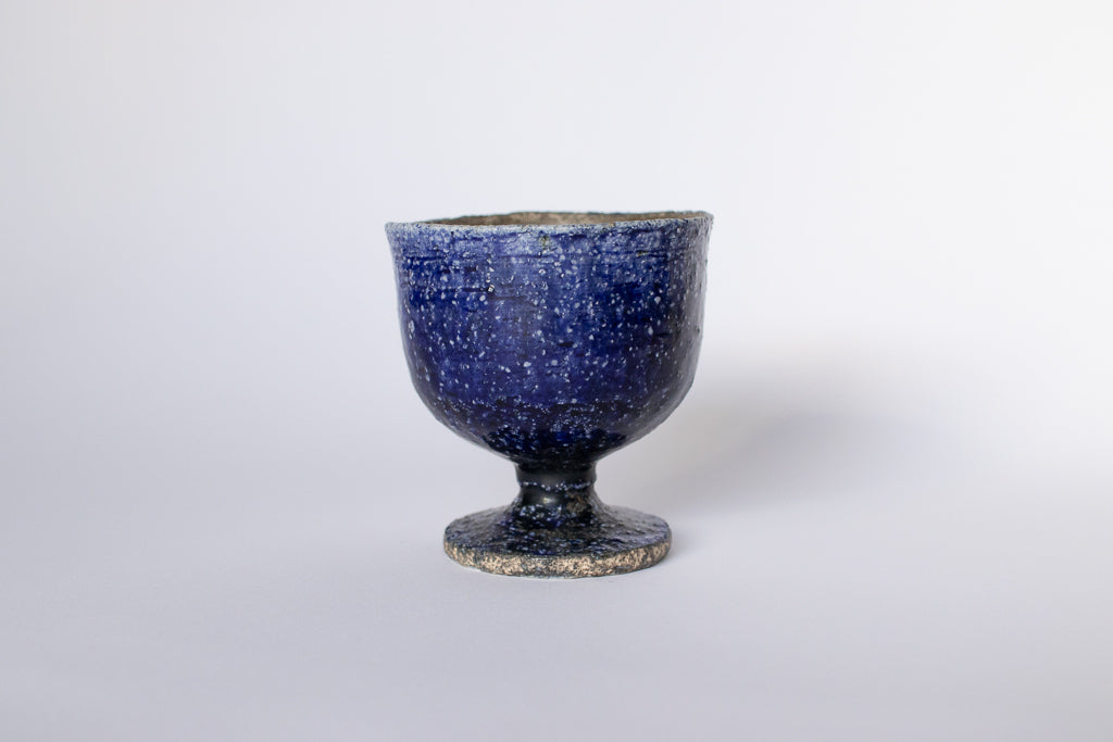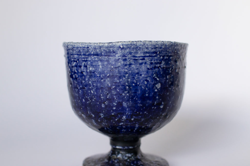 岐阜の市川恵大さんの瑠璃銀彩ゴブレットです。深い瑠璃色と、内側の朽ちたような風合いに施された銀彩のコントラストが美しい作品です。