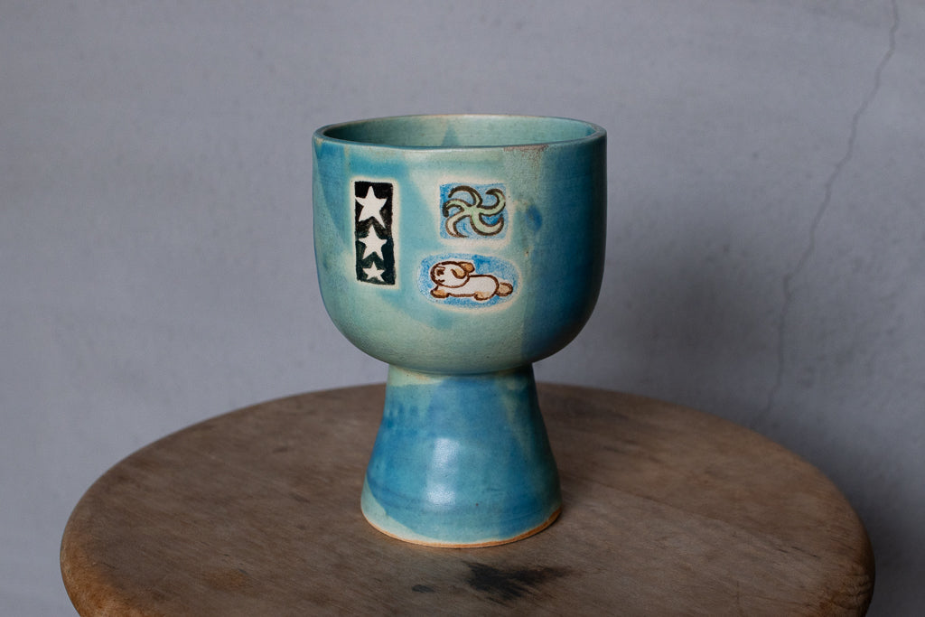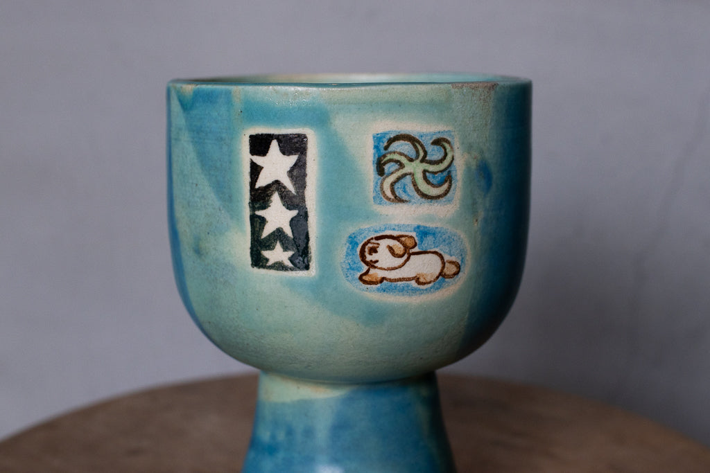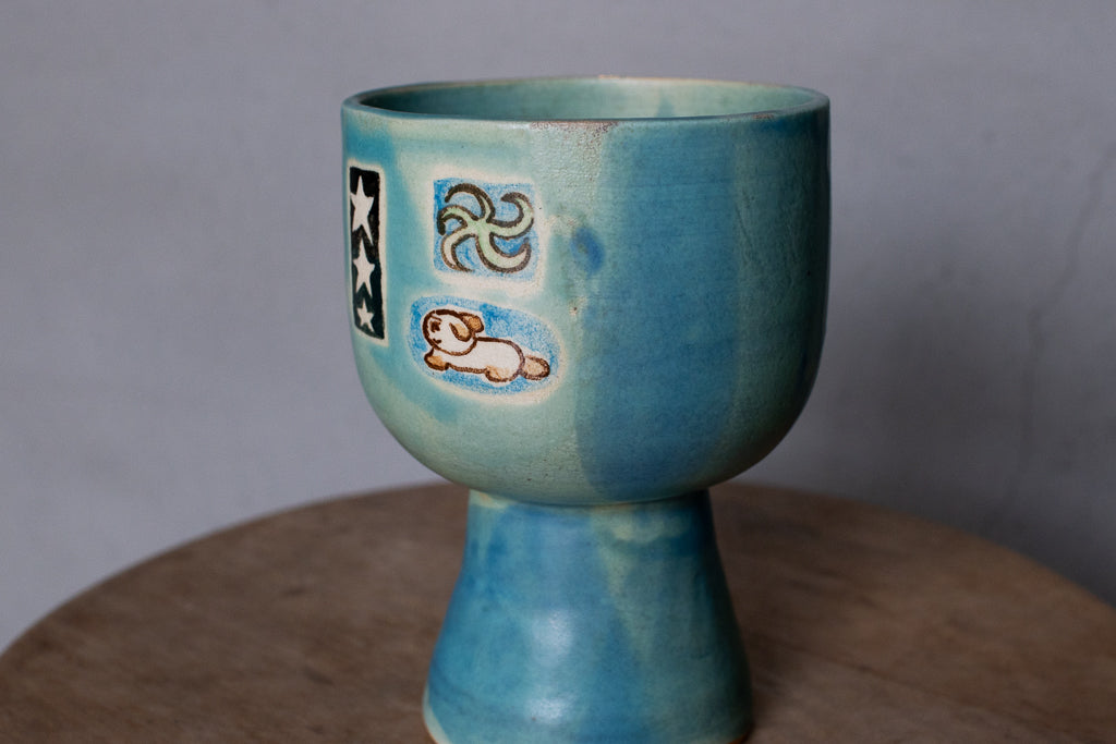 時山桜 / 高坏ゴブレット 星・ヒトデ・ねこ(いぬ?) フリーカップ