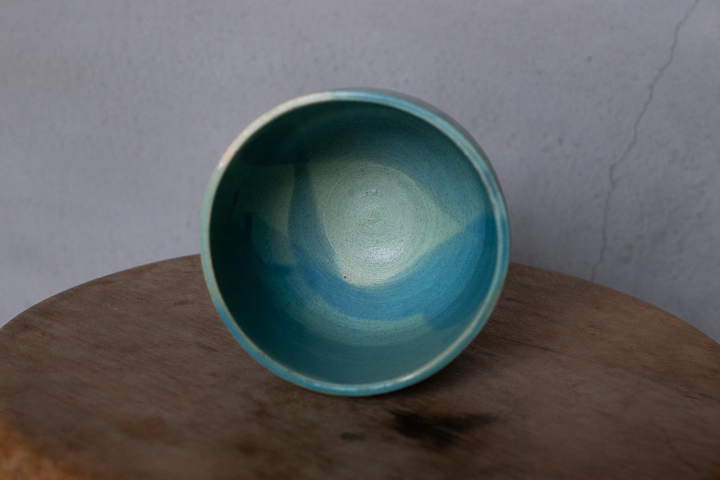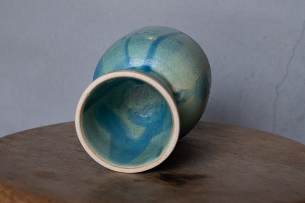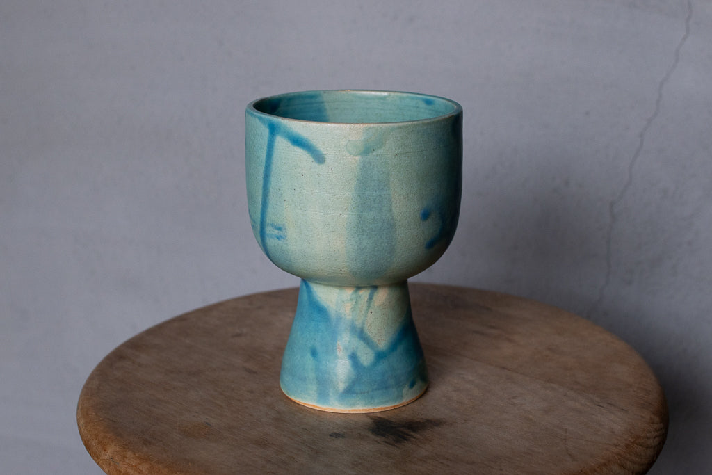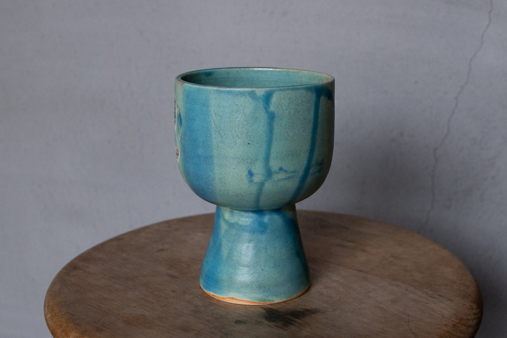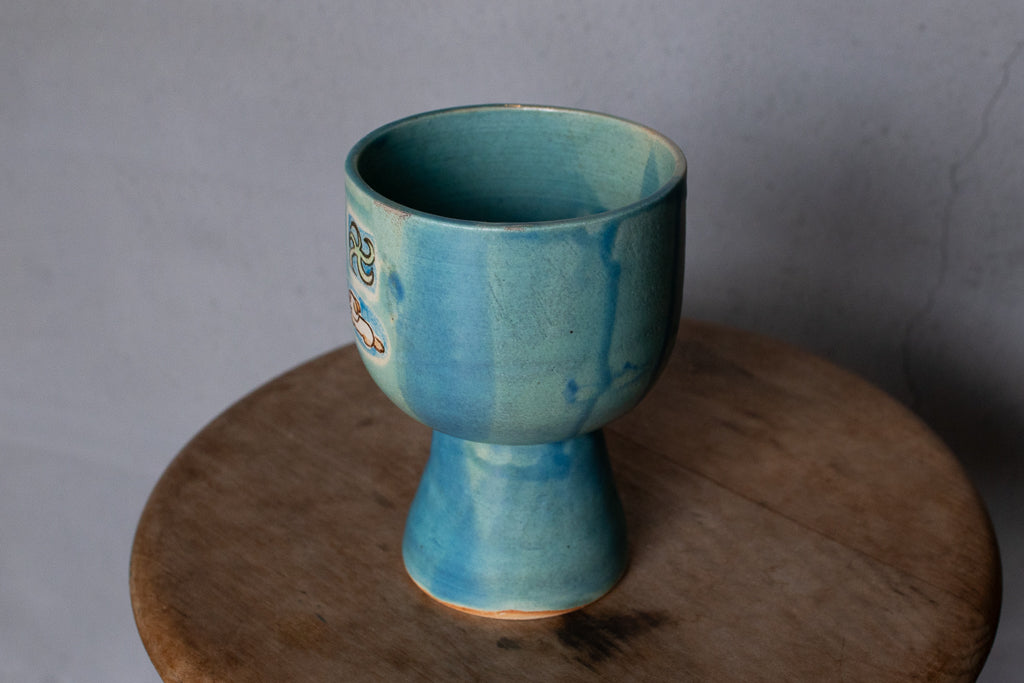 しっかり目の容量が確保された高坏のゴブレット。キュートな絵付けが施された一点ものです。グリーン系はちょっと珍しい気がします。