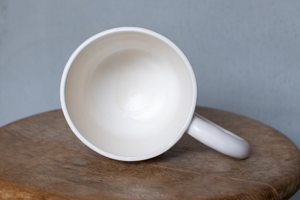 人気の柔らかいホワイトカラーのタイプ。大きなハンドルもカワイイです。ガッツリ貫入が入る可能性がございますので、渋く育てたいわけではない方は、ご使用前に目止めすることをおすすめします。