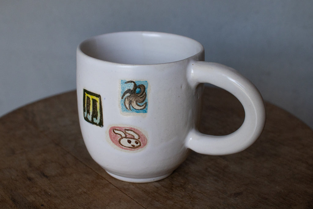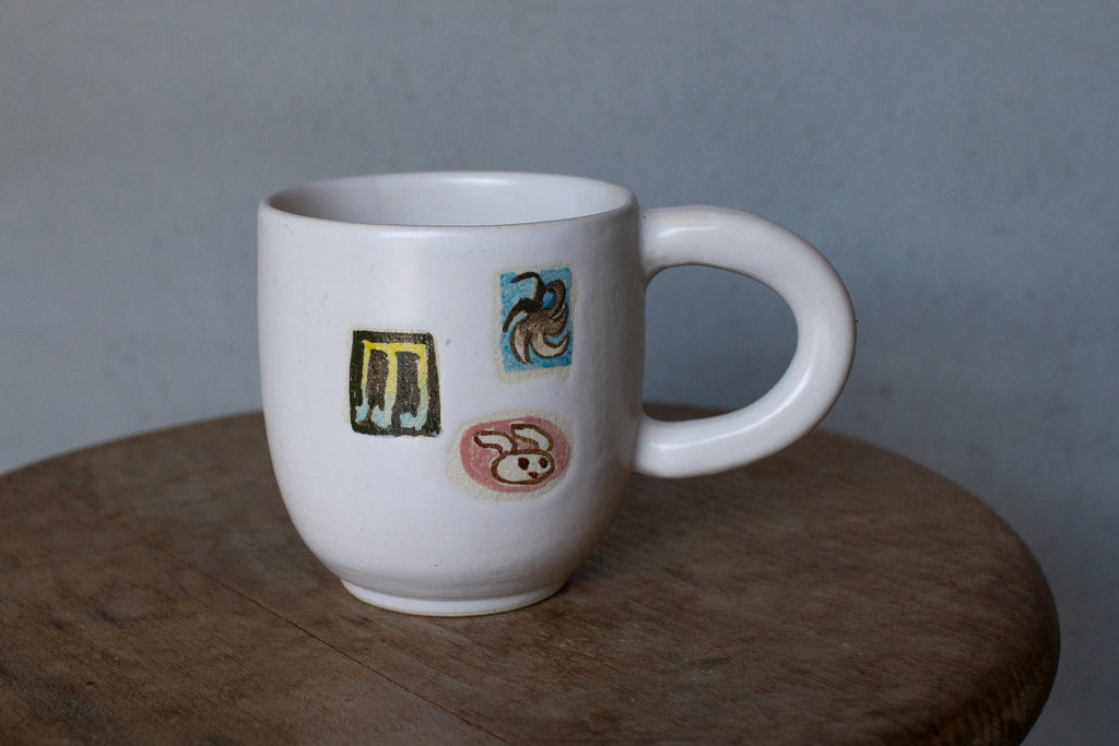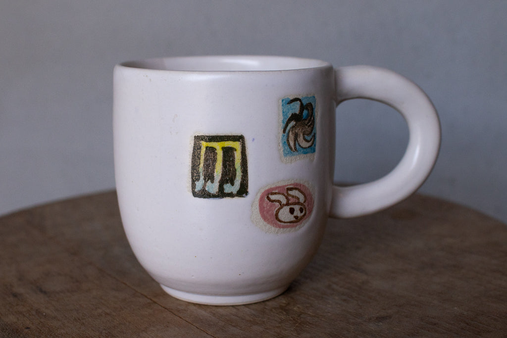 時山桜 / 大きめのマグカップ 白 風車・音符・うさちゃん 縦長シルエット