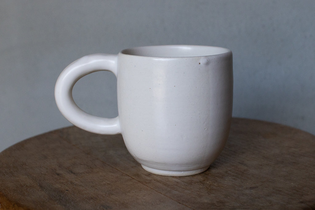 人気の柔らかいホワイトカラーのタイプ。大きなハンドルもカワイイです。ガッツリ貫入が入る可能性がございますので、渋く育てたいわけではない方は、ご使用前に目止めすることをおすすめします。