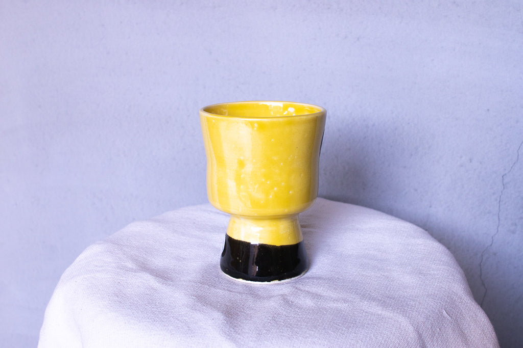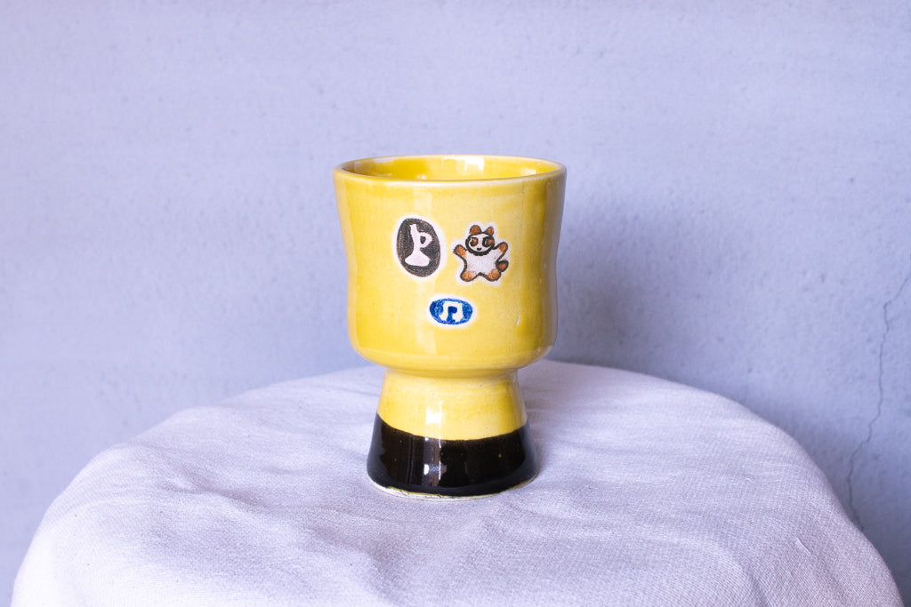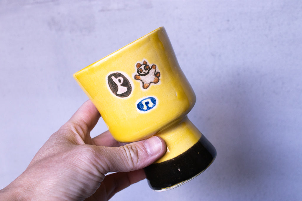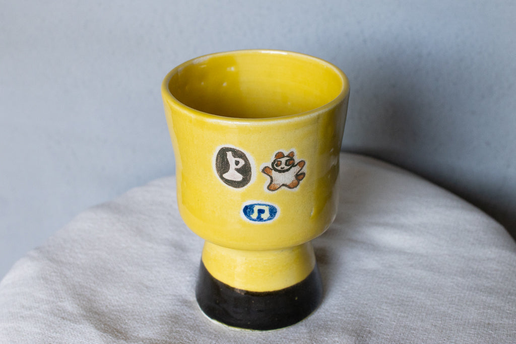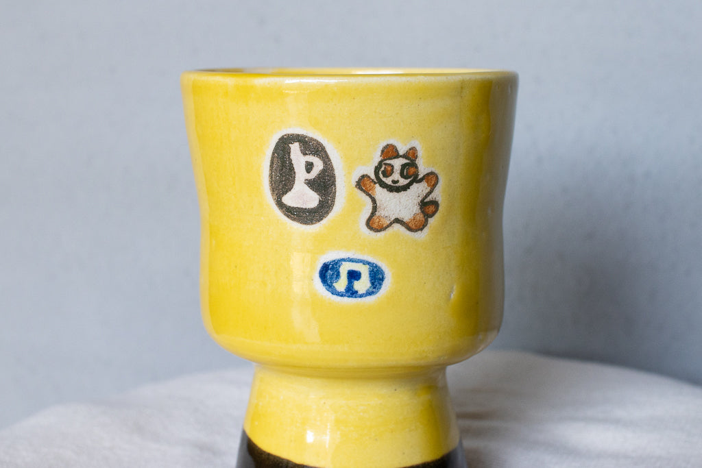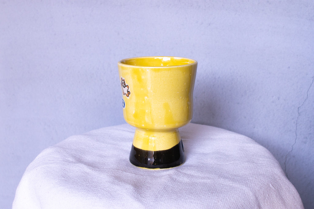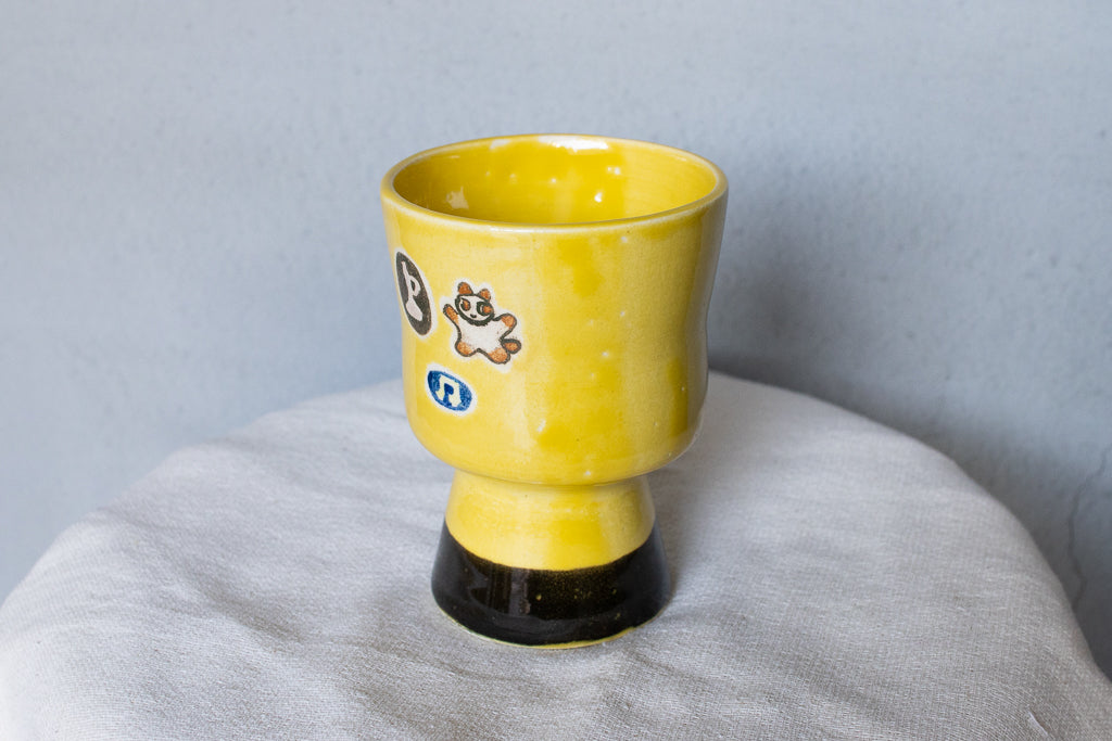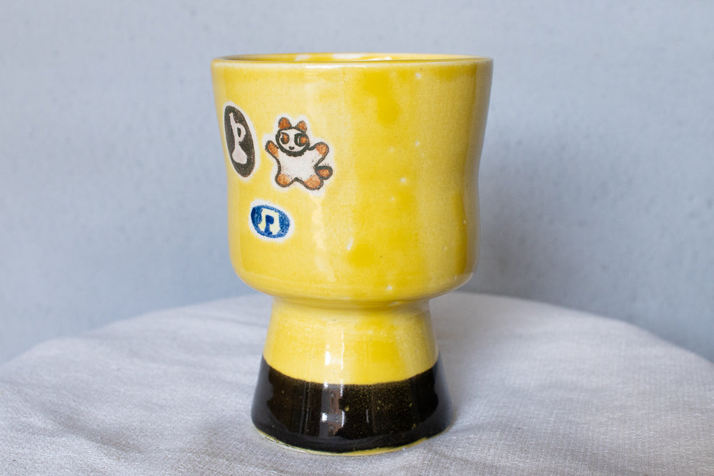 時山桜 / 高坏ゴブレット イエロー(ねこ・トランペット・音符)フリーカップ