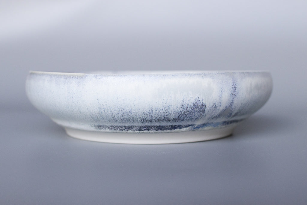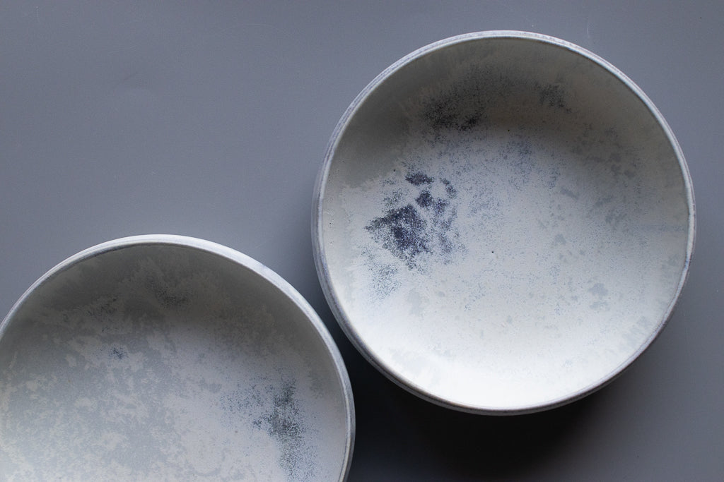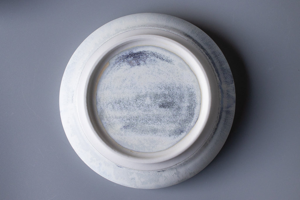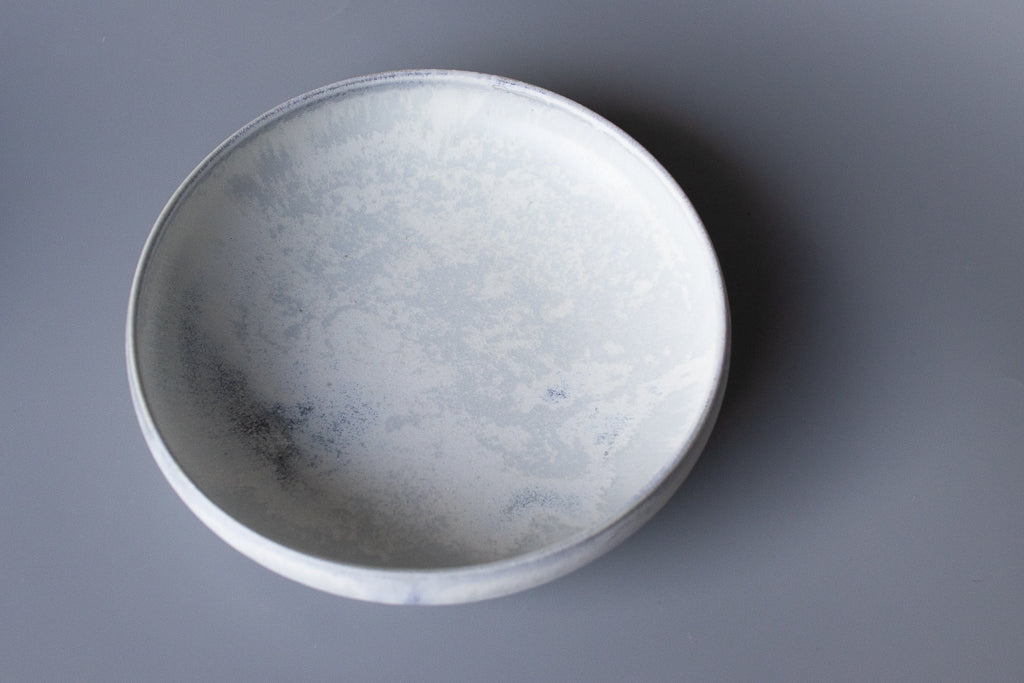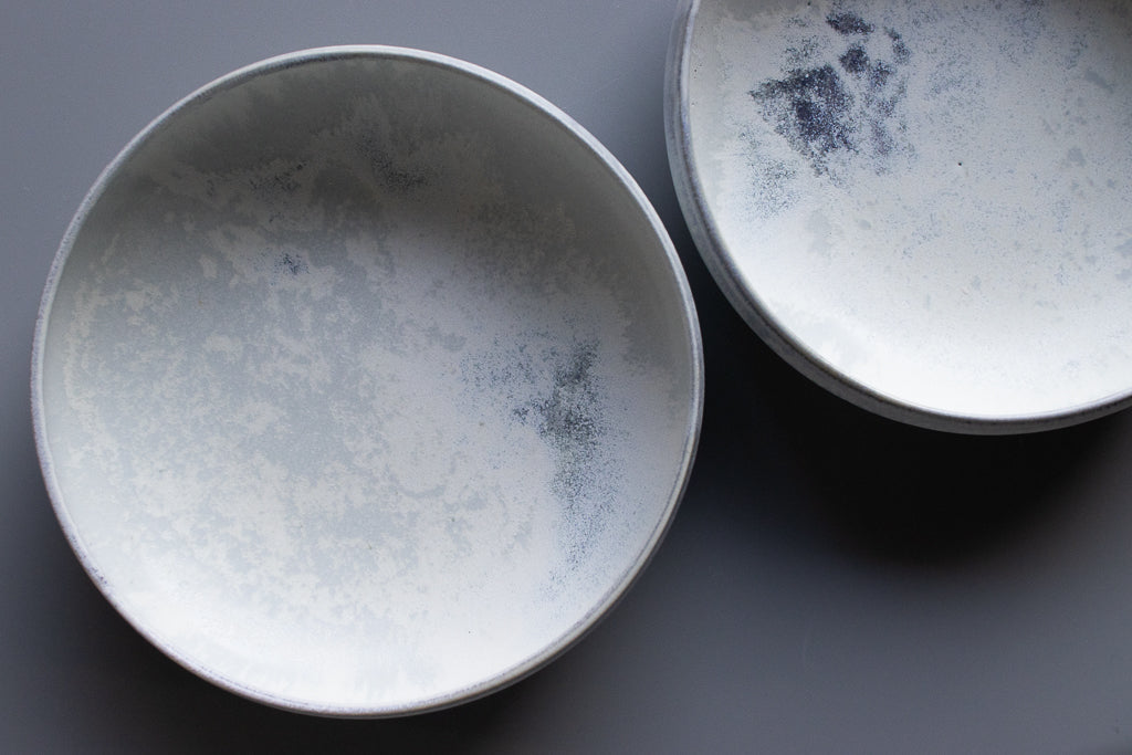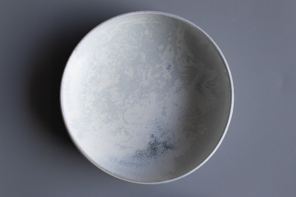 村井さんといえばのチタン釉の作品です。素材は磁土なのでレンジもOK。目止めも必要ありません。カップ類も素敵ですがお皿・鉢の見込みに広がる景色は特筆ものです。お料理の邪魔をしない美しさを湛えています。