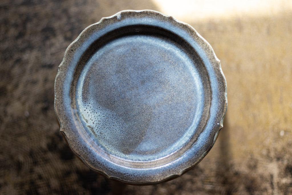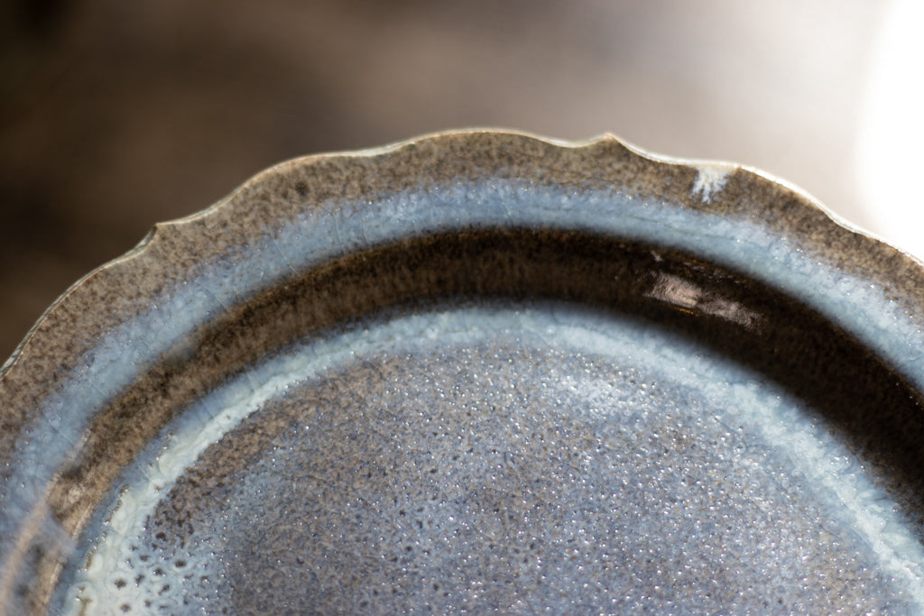 厚めに掛かった青釉の結晶が今まで見ない感じの模様を描いていて珍しい気がします。