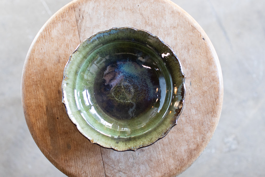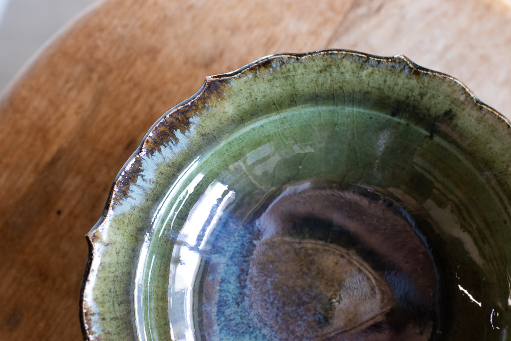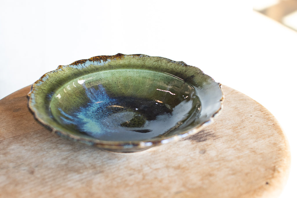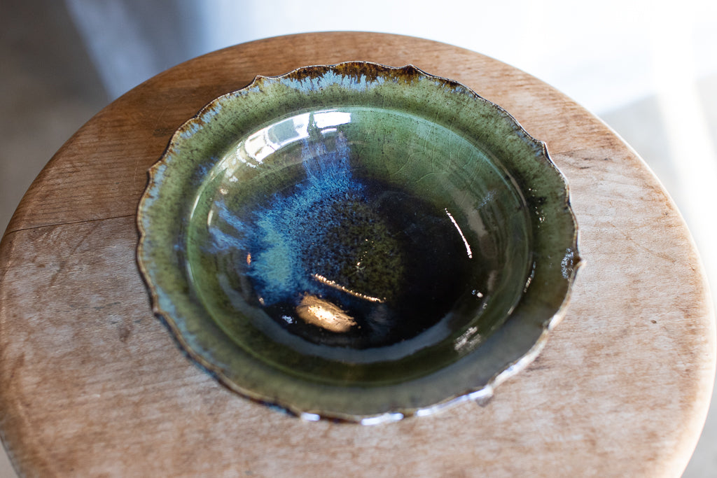 ほど良く深さのある小皿・小鉢です。緑と青のグラデーションが美しい青銅釉。