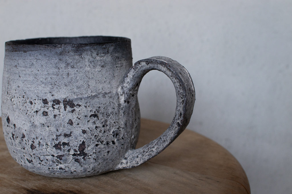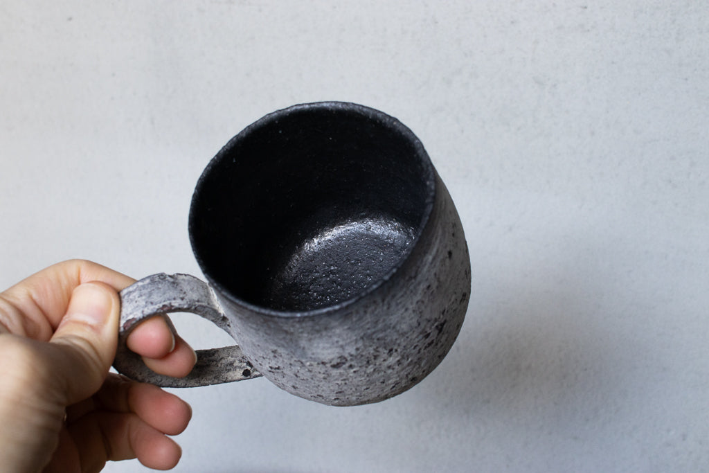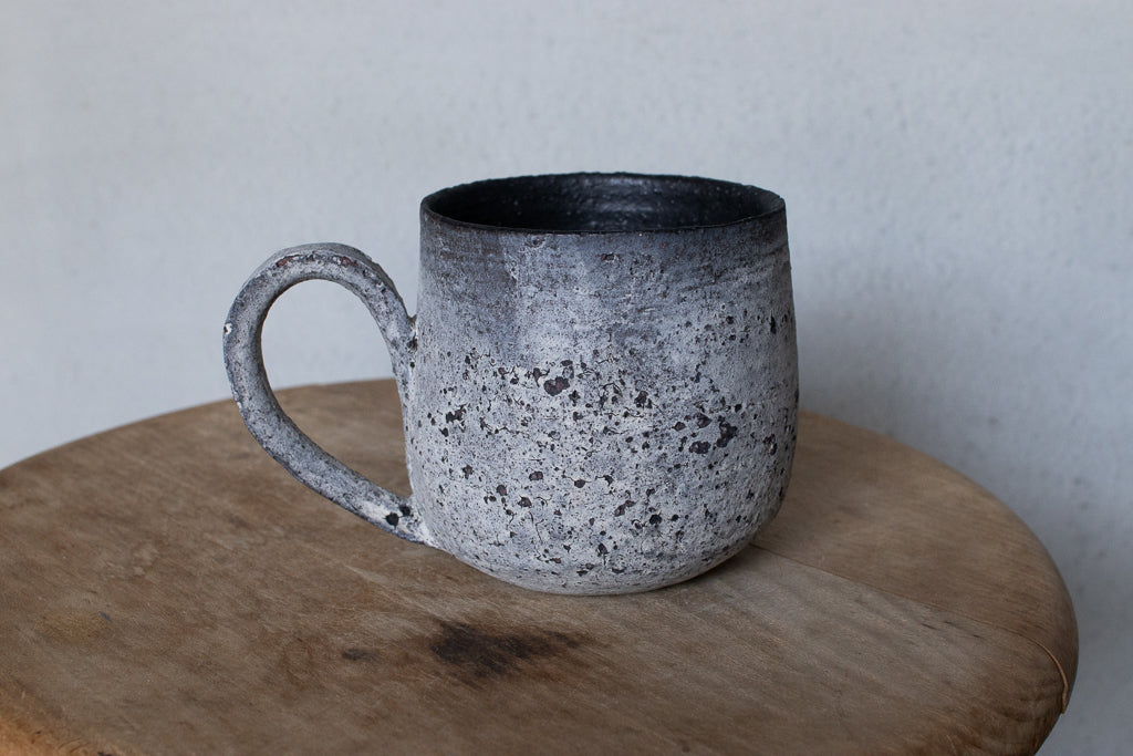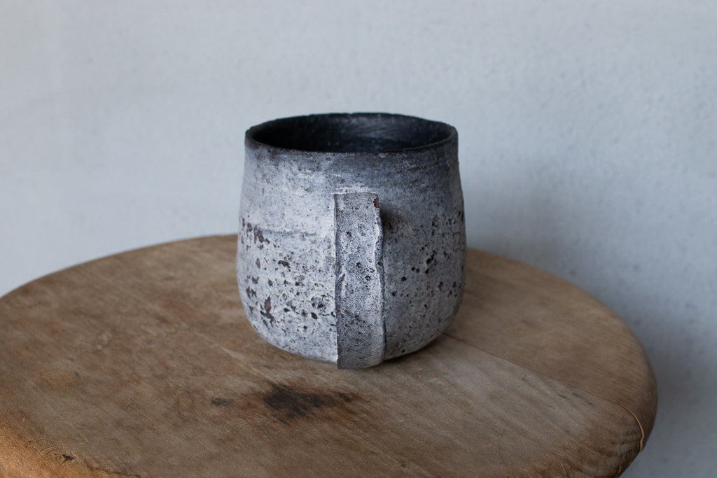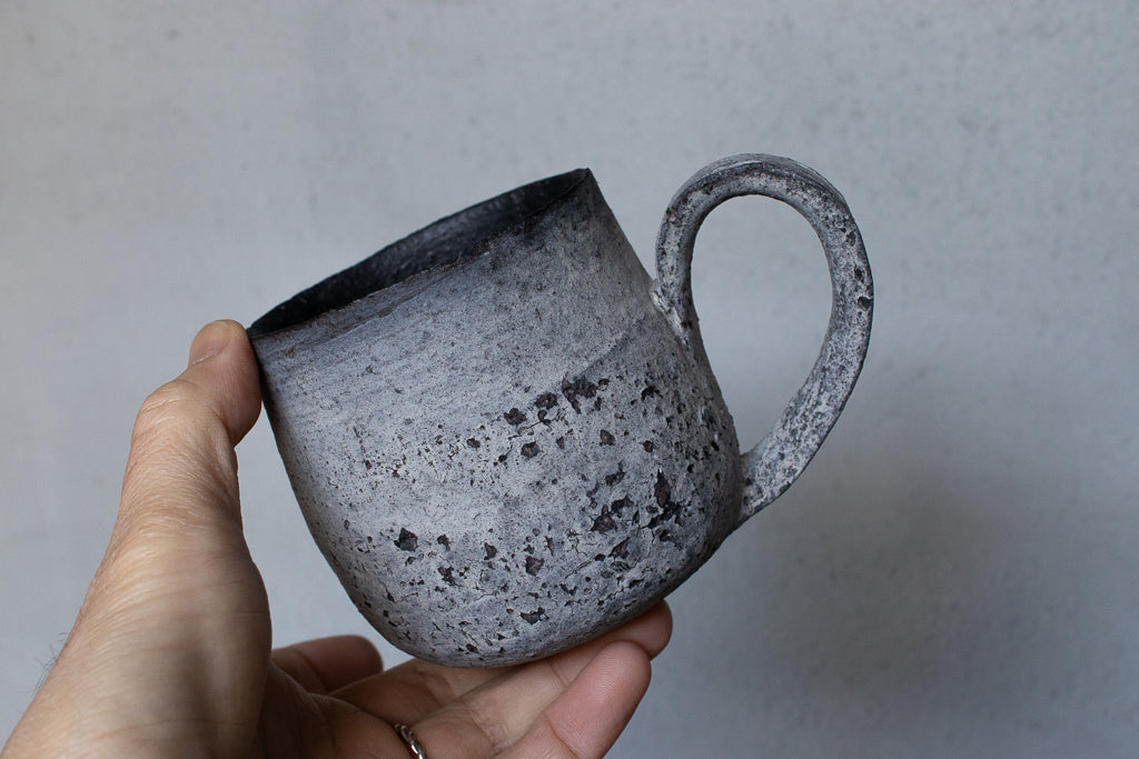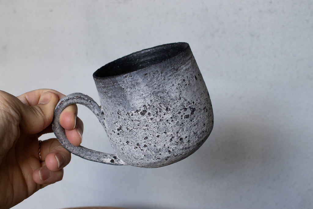 栁川晶子さんのマグカップです。顔料で色味をつけてから化粧土を掛けた無釉の焼締めの作品。独特の枯れた表情がとても素敵です。