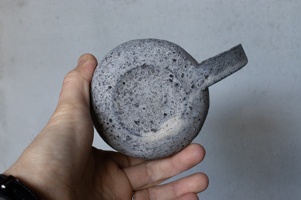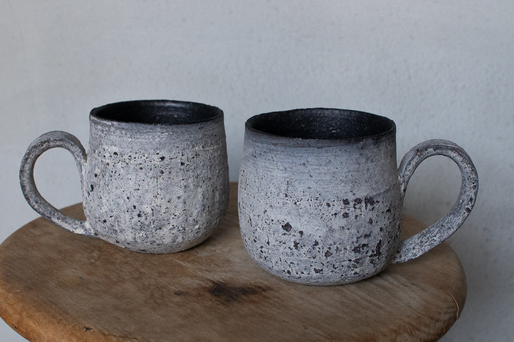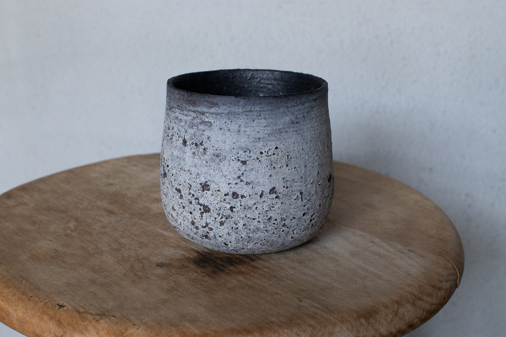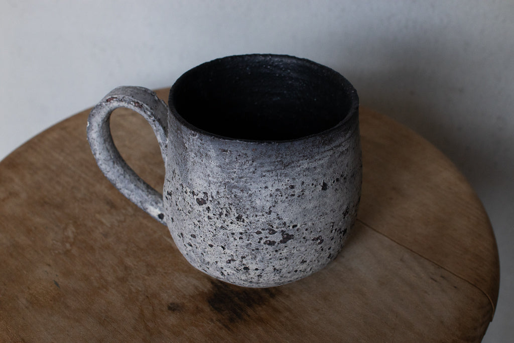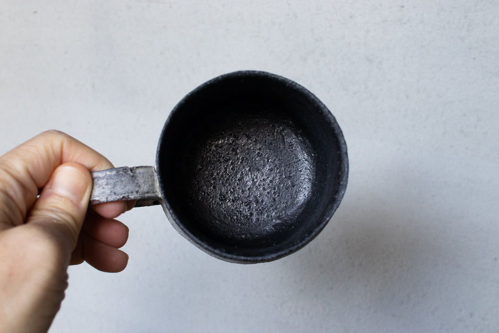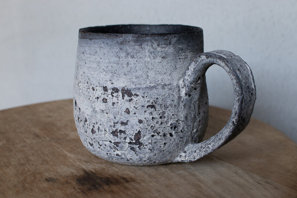栁川晶子さんのマグカップです。顔料で色味をつけてから化粧土を掛けた無釉の焼締めの作品。独特の枯れた表情がとても素敵です。