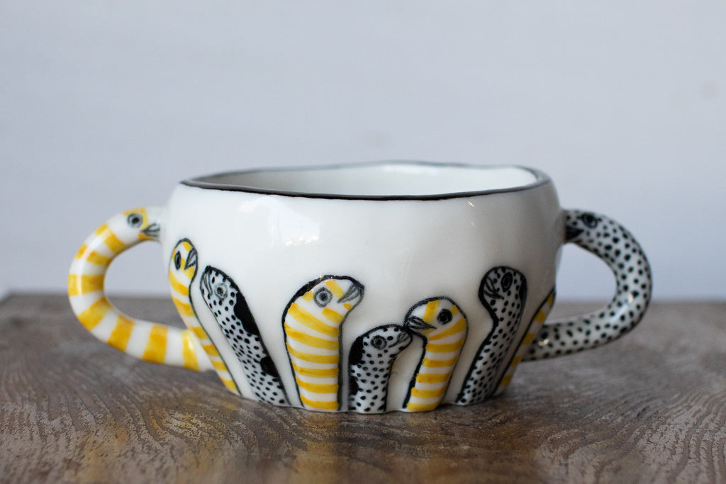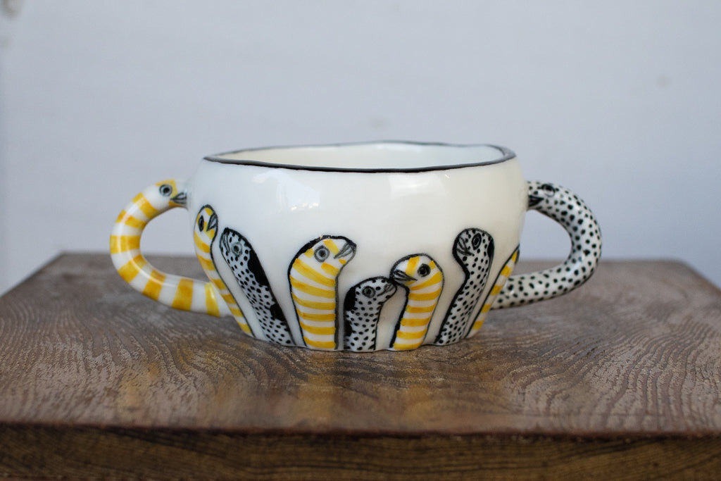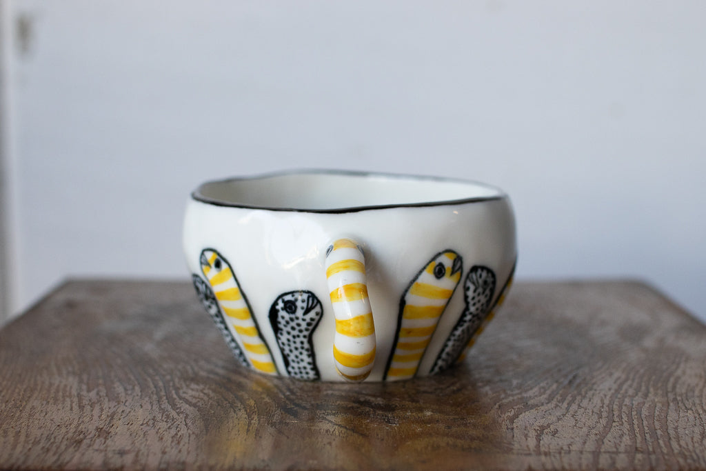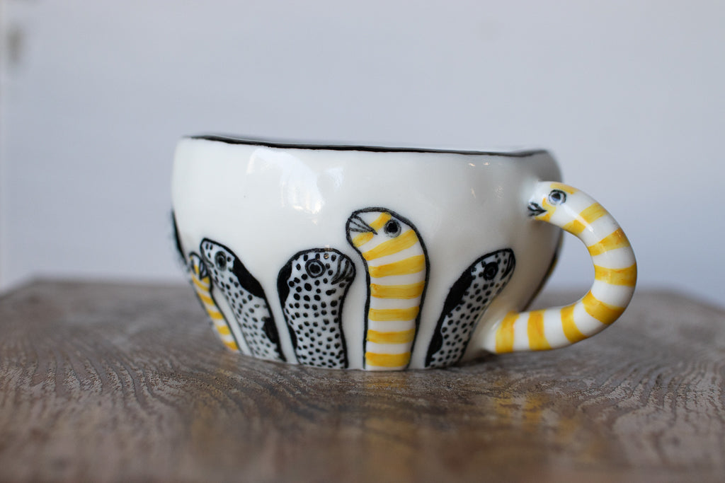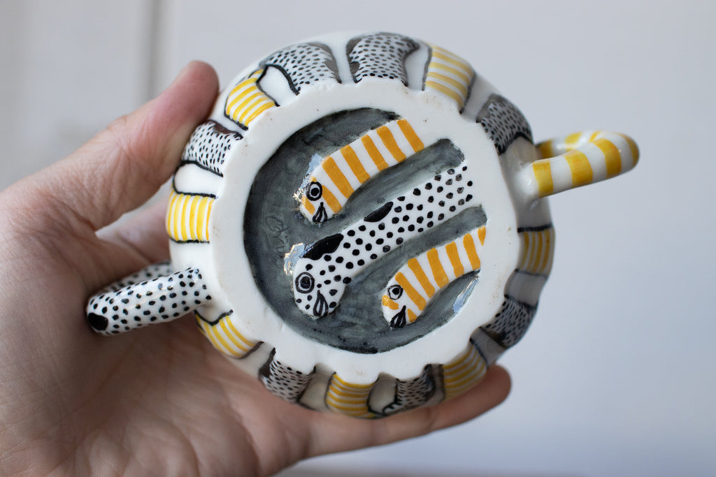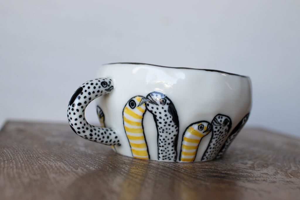 手びねりのマグ。描かれたチンアナゴは実に17匹(ハンドルも含めれば19匹)。