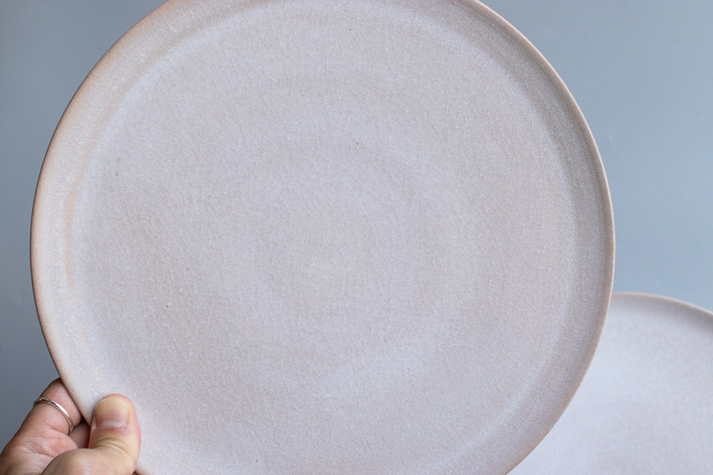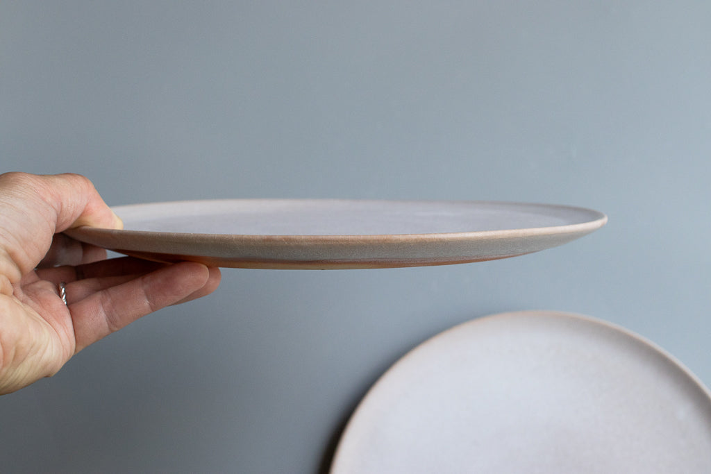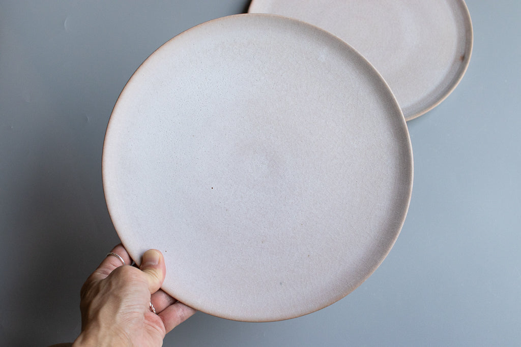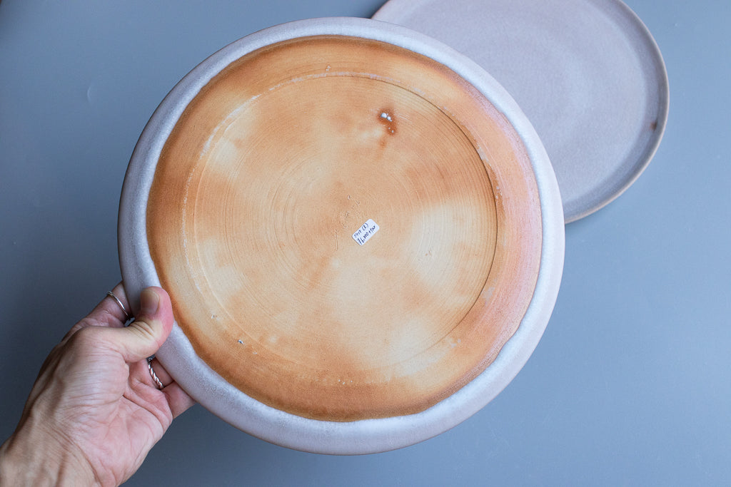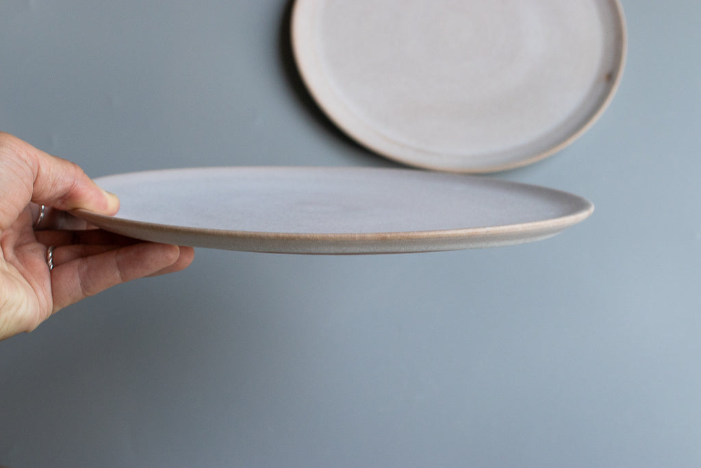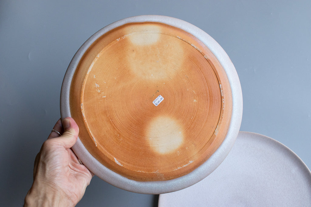 大きめのフラット皿。見込みはフラットですがリムがほんの少し立ち上がっているため、どんなお料理でも便利にお使い頂けそうです。
