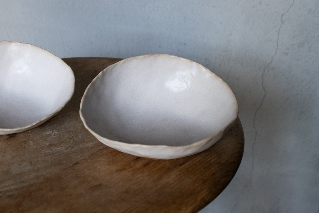 全体的に薄く繊細な造形ながらもトゲトゲしさはなく、独自調合した釉薬のテクスチャとも相まって柔らかく優しい雰囲気を纏っています。