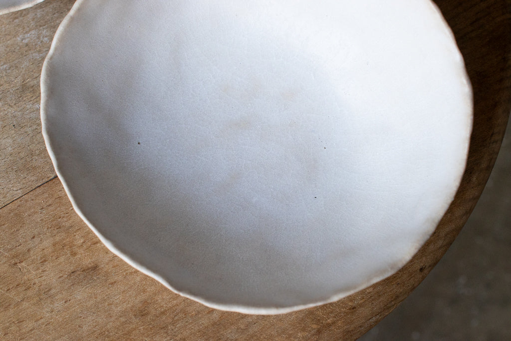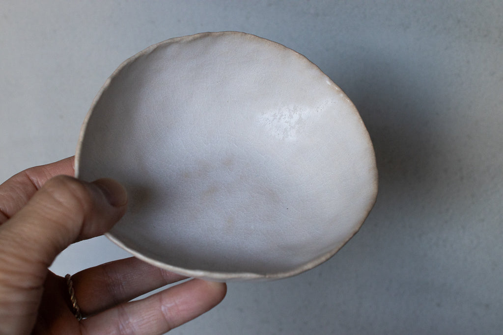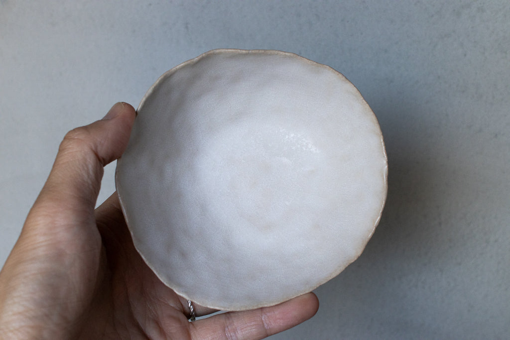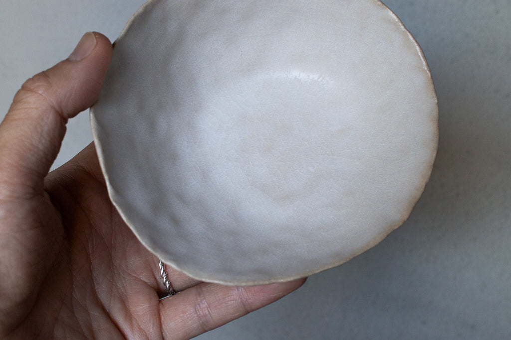 表面に貫入が入っており、白は特に経年変化が見られやすいので、「器が育っていく」という過程をはっきりと見て取りたい方には特におすすめです。気になる方は目止めを。