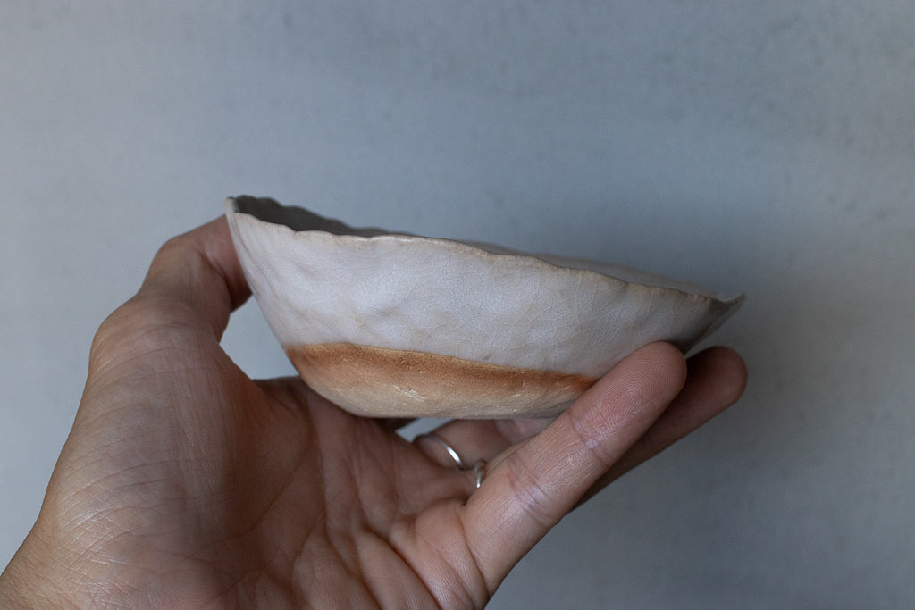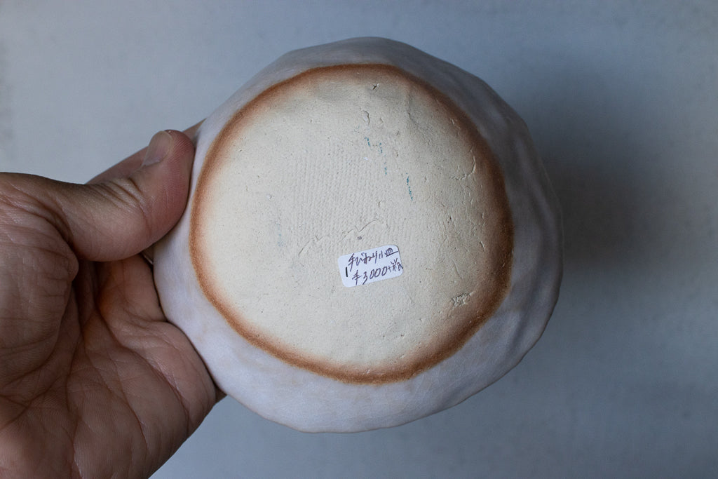 田川さんの代表的な釉薬だと個人的には思っている「白」。信楽の土の赤褐色がうっすらを透けてなんとも言えないニュアンスが感じられます。裏側も美しく非常におすすめです。