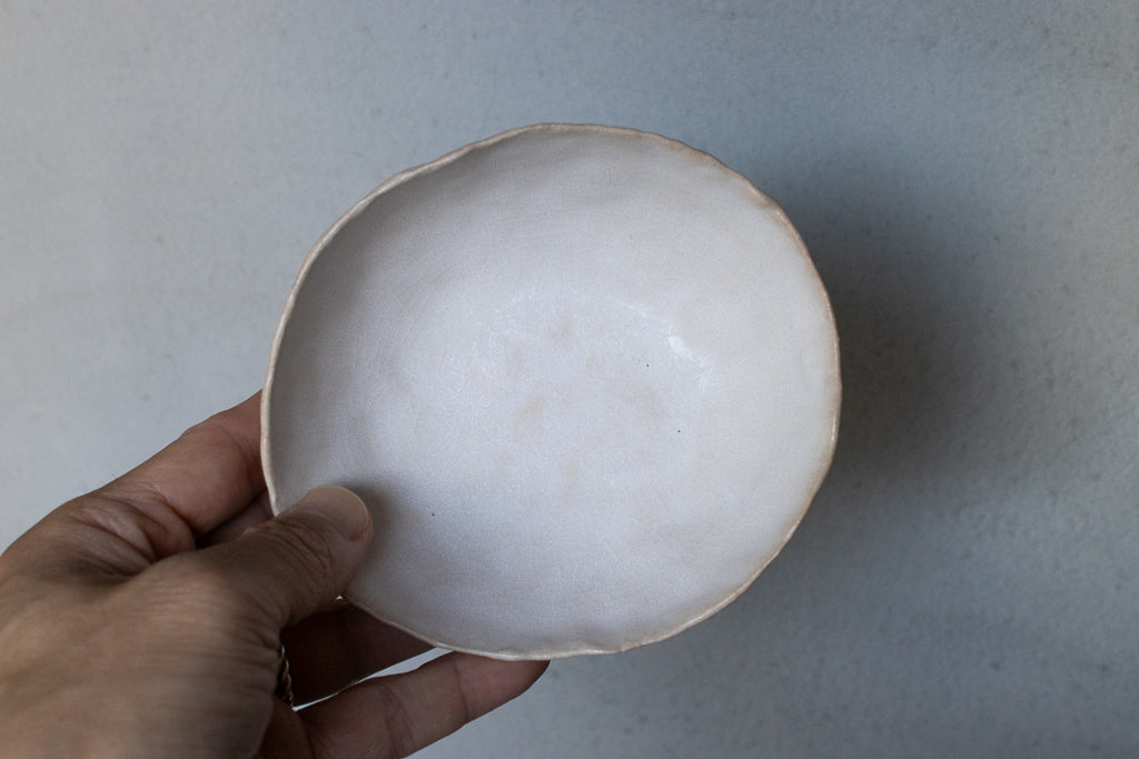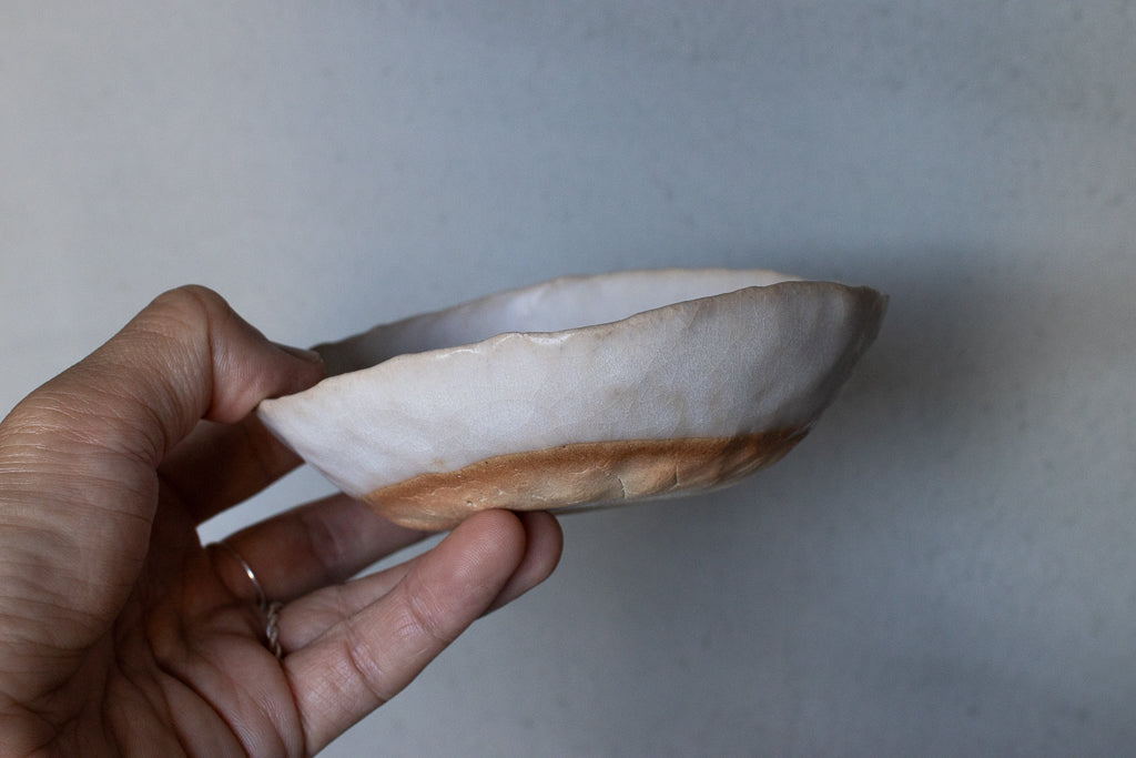 手びねりによるのびのびとした造形が魅力的な小皿です。小物入れやアクセサリートレイとしても。