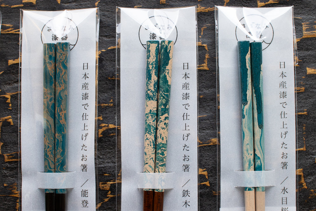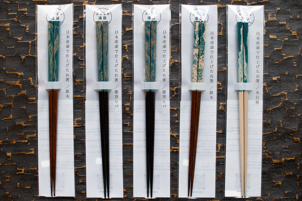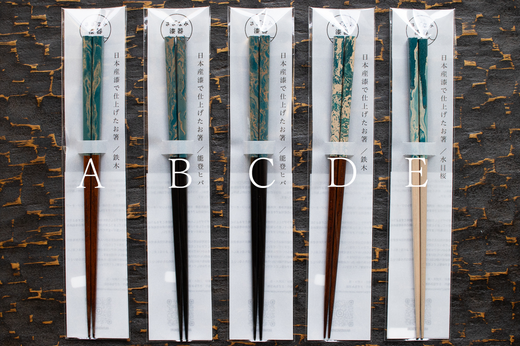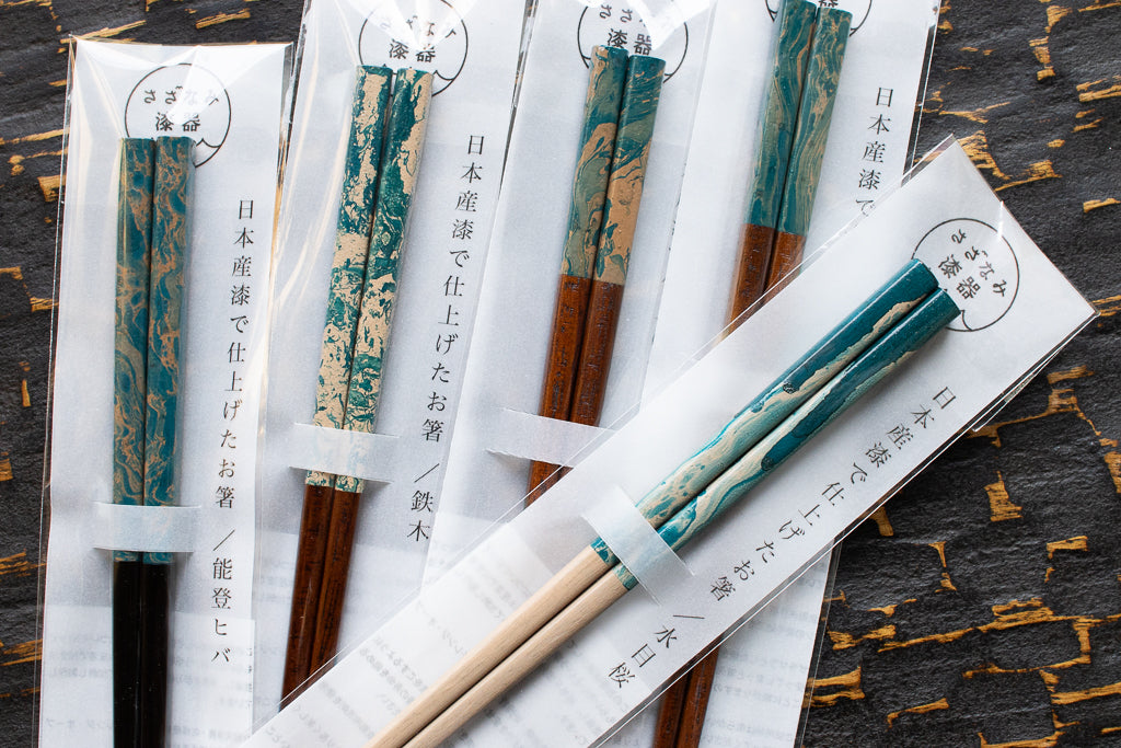 竹森滉 / さざなみ漆器 日本産漆で仕上げたお箸(柄部分長め) 墨流し