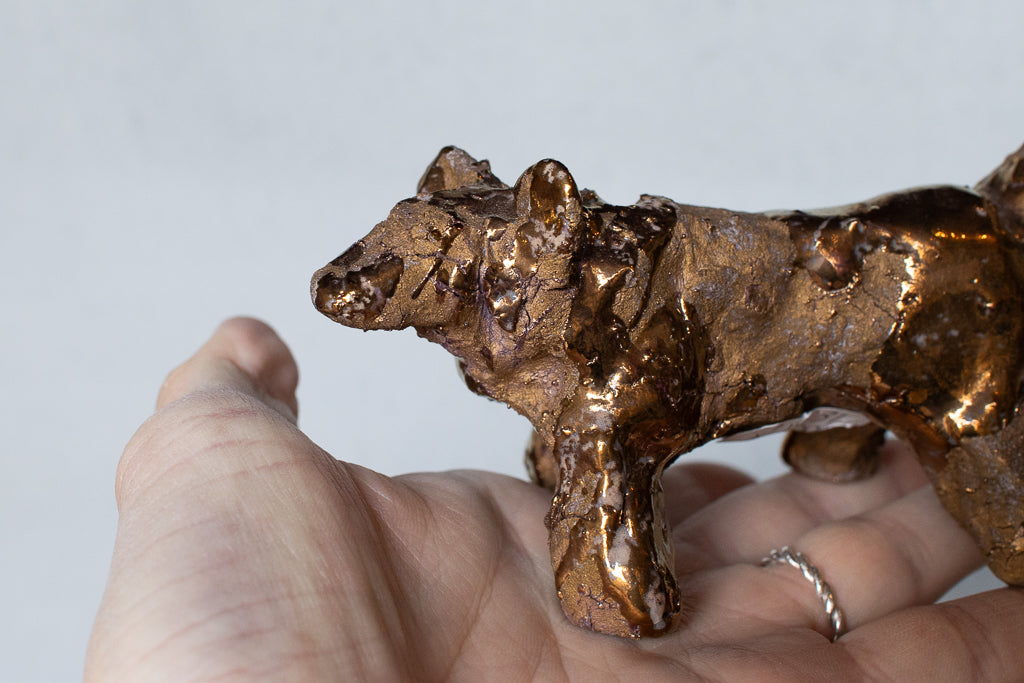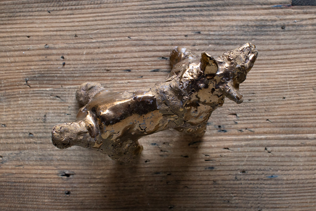 芳賀稔 / いぬ 金彩 オブジェ 置物