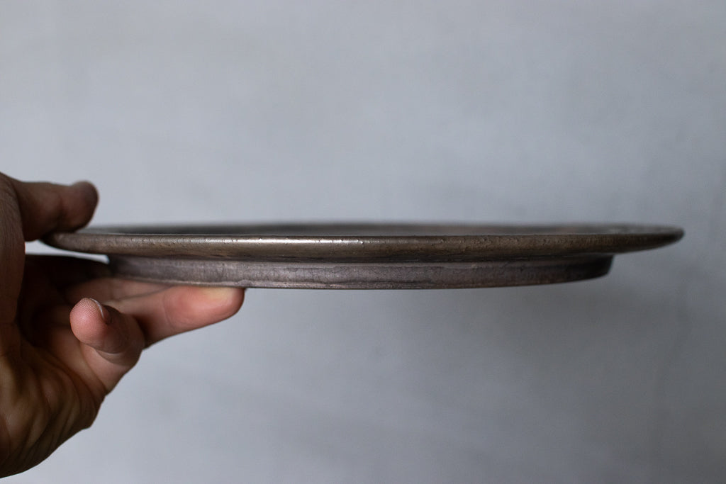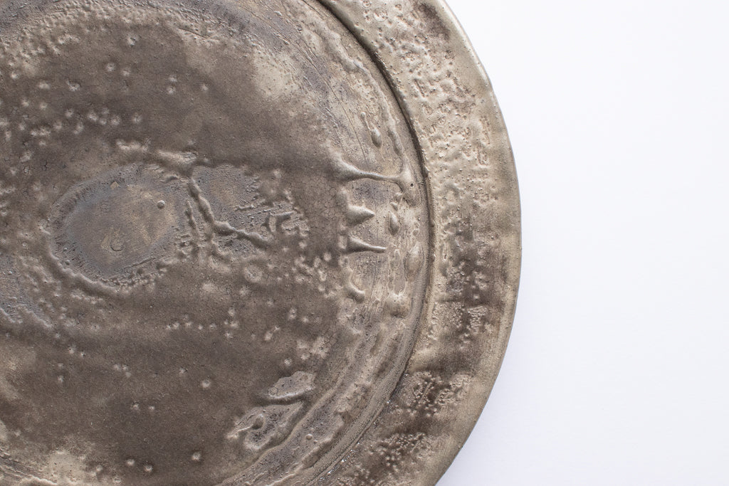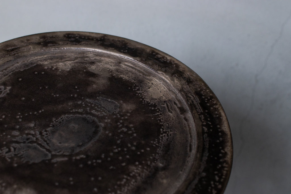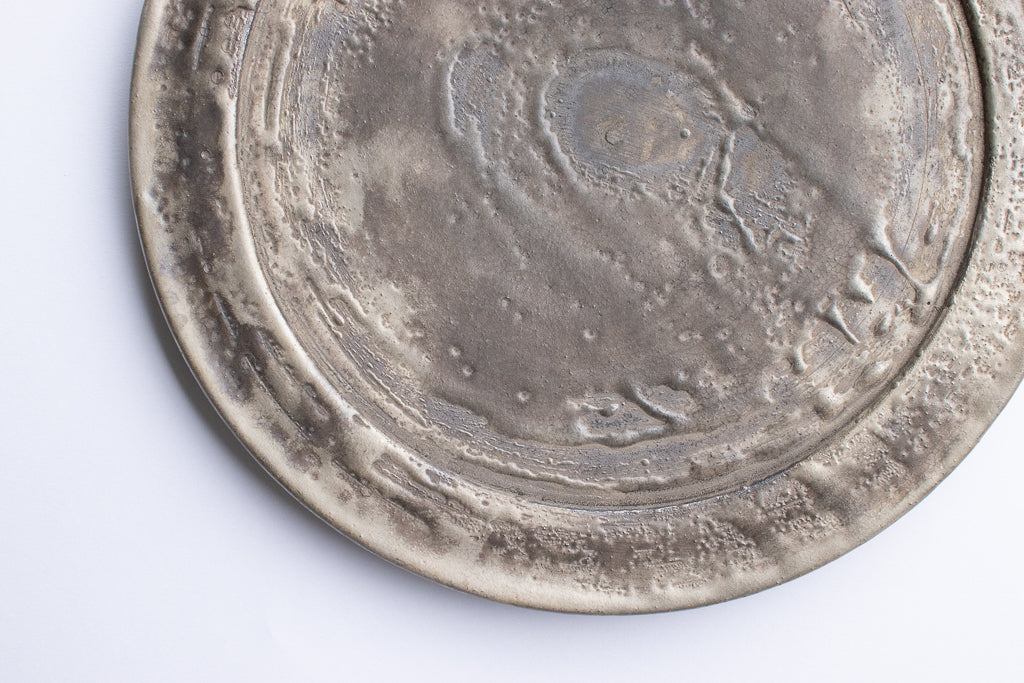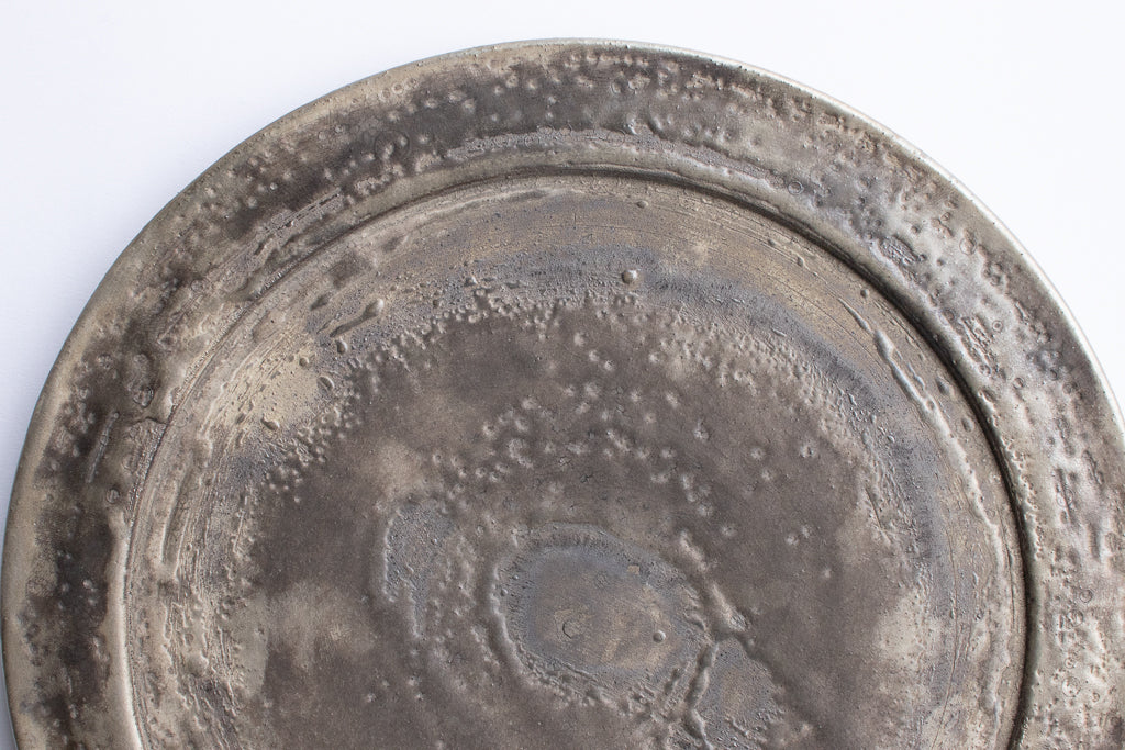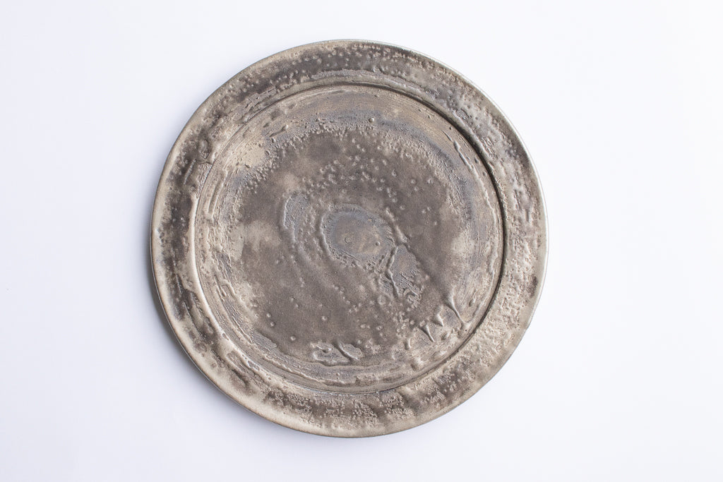 広島の芳賀稔氏の銀彩のプレートです。動きのある表情が非常に格好良い作品です。銀ならではの、時間経過とともに風合いが変化するさまをお楽しみいただけます。