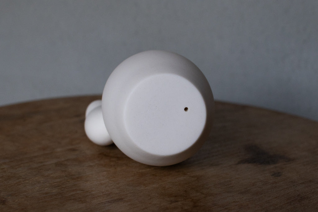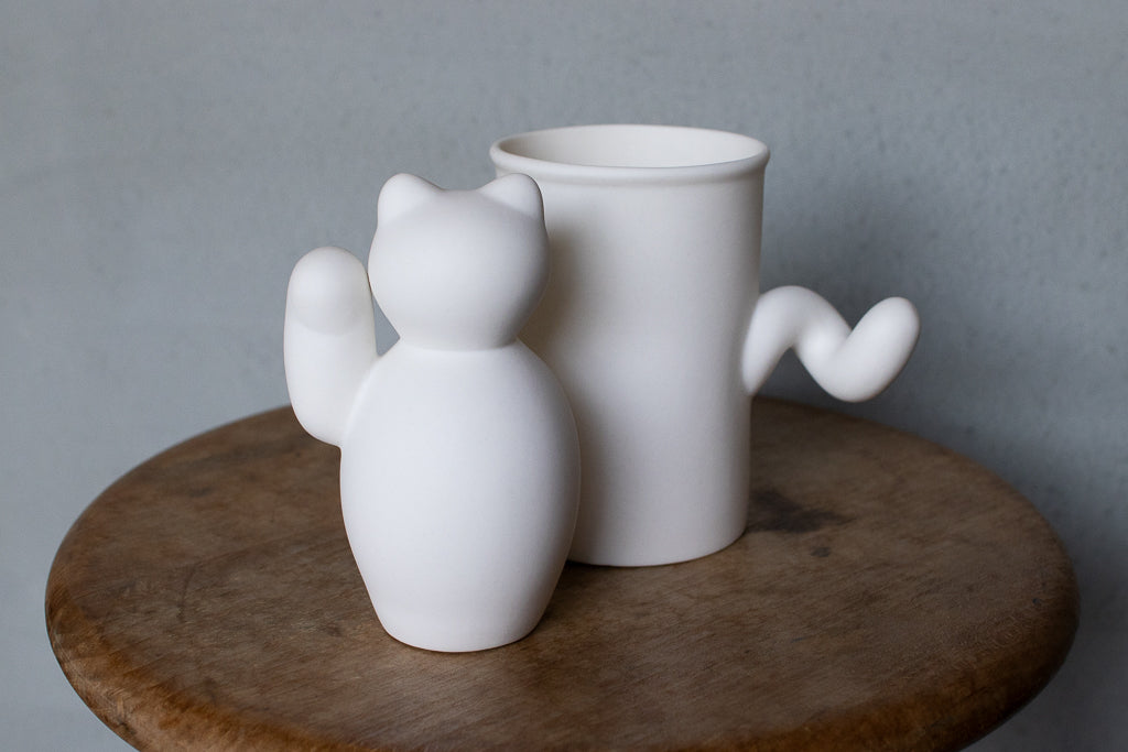 磁土・鋳込み・無釉。独特のすべすべした手触りは執念の磨き作業によるもの。ぜひ撫でさすってみてください。